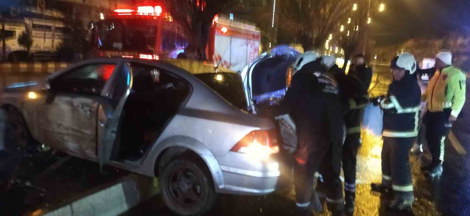 Sürücüsünün Direksiyon Hakimiyetini Kaybettiği Otomobil Kaldırıma Çarptı