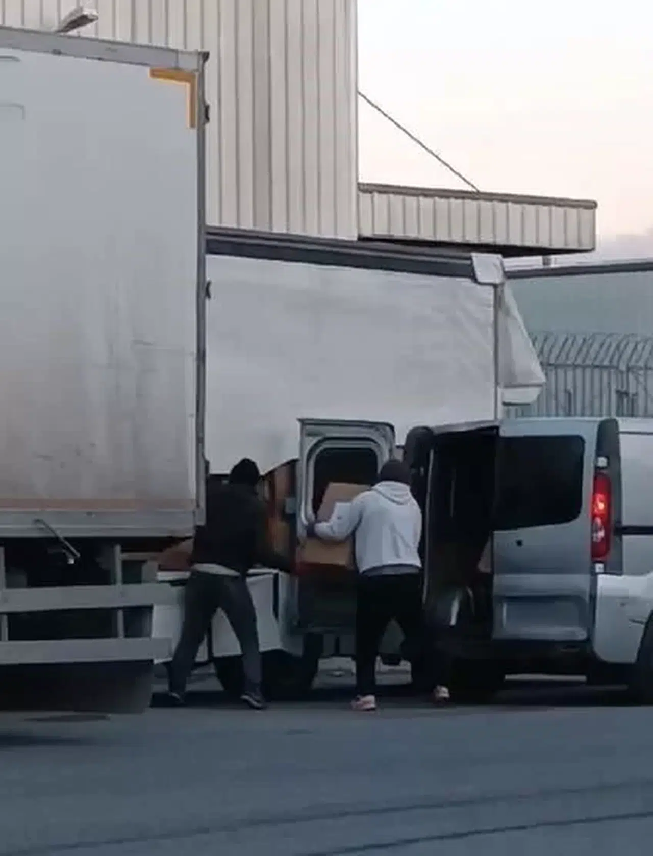Olay, sabah saatlerinde Osmangazi Mahallesi’nde yaşandı. Yoldan geçen araç ve insanlara aldırmayan 3 şahıs, panelvan minibüs ile tır dorsesine yanaştı. Yük taşır gibi kolileri araca bindiren hırsızlar, çevredeki vatandaşların tepki göstermesi ile kaçtı. Soyulan aracın içindeki sürücünün uyuması dikkat çekti. Rahat tavırlar sergileyen hırsızlar cep telefonu kamerasına yansıdı.