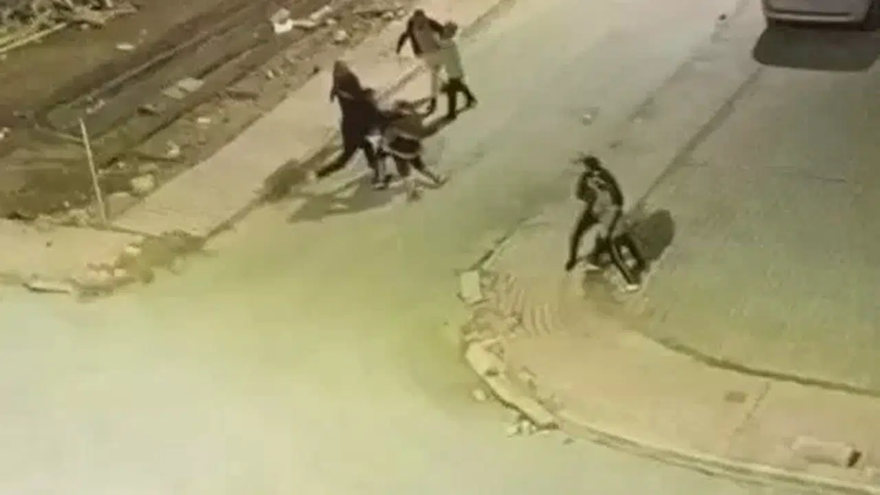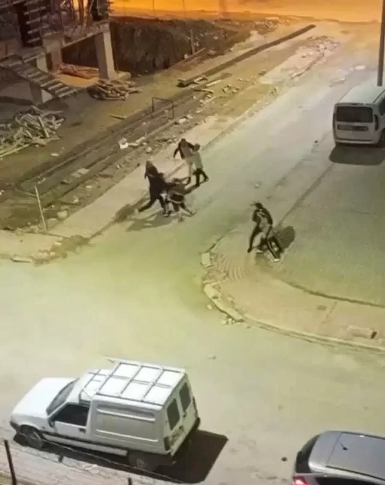 Görüntülerde, iki grubun karşılaşması üzerine tekme ve yumruklarla birbirine saldırdığı ve taraflardan birinin yere düşmesi sonucu bir kişinin üzerinde yumruklarken diğer kişinin ise tekme attığı görülüyor. Kavganın yoldan geçen bir otomobilden inen 2 kişinin araya girmesiyle son bulduğu görülüyor.