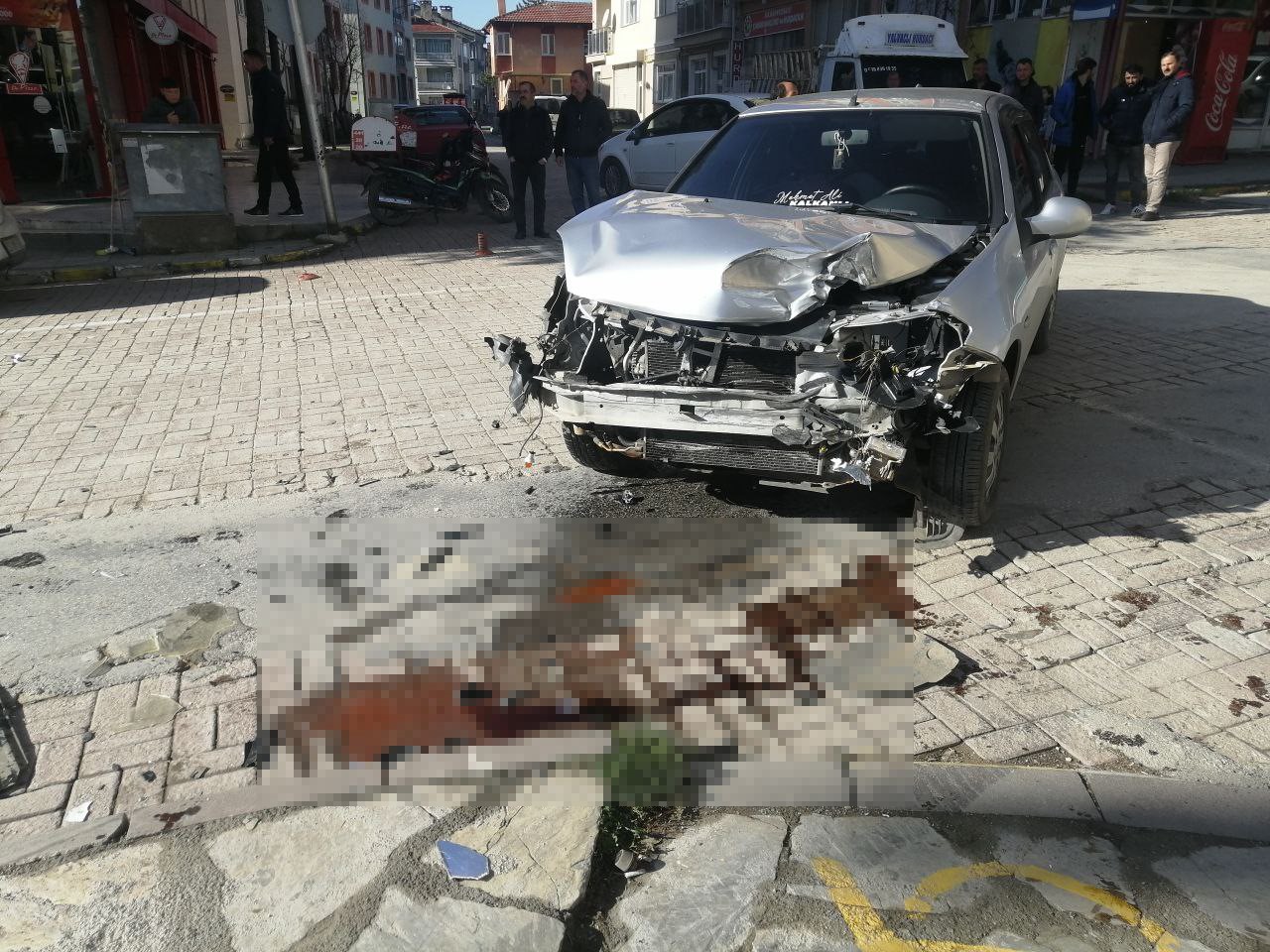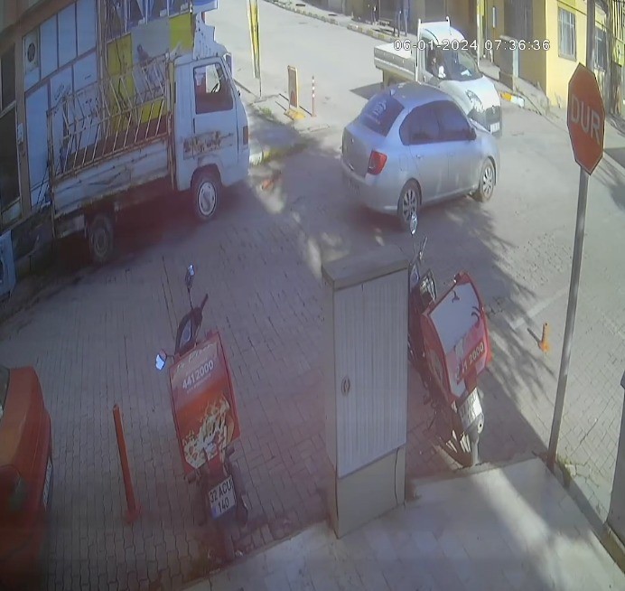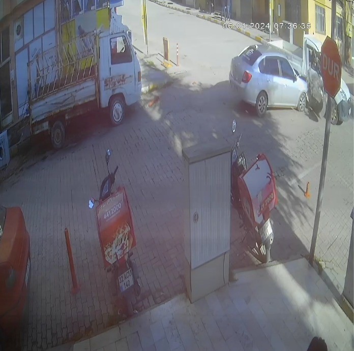Otomobilin ara sokaktan hızla çıkıp kamyonete çarptığı ve savurduğu görüntüler çevredeki iş yerinin kamerasına saniye saniye yansıdı.