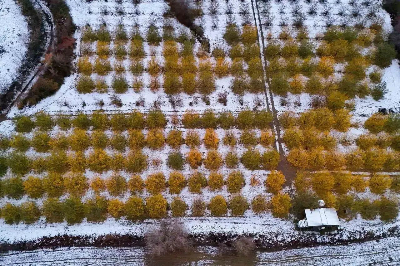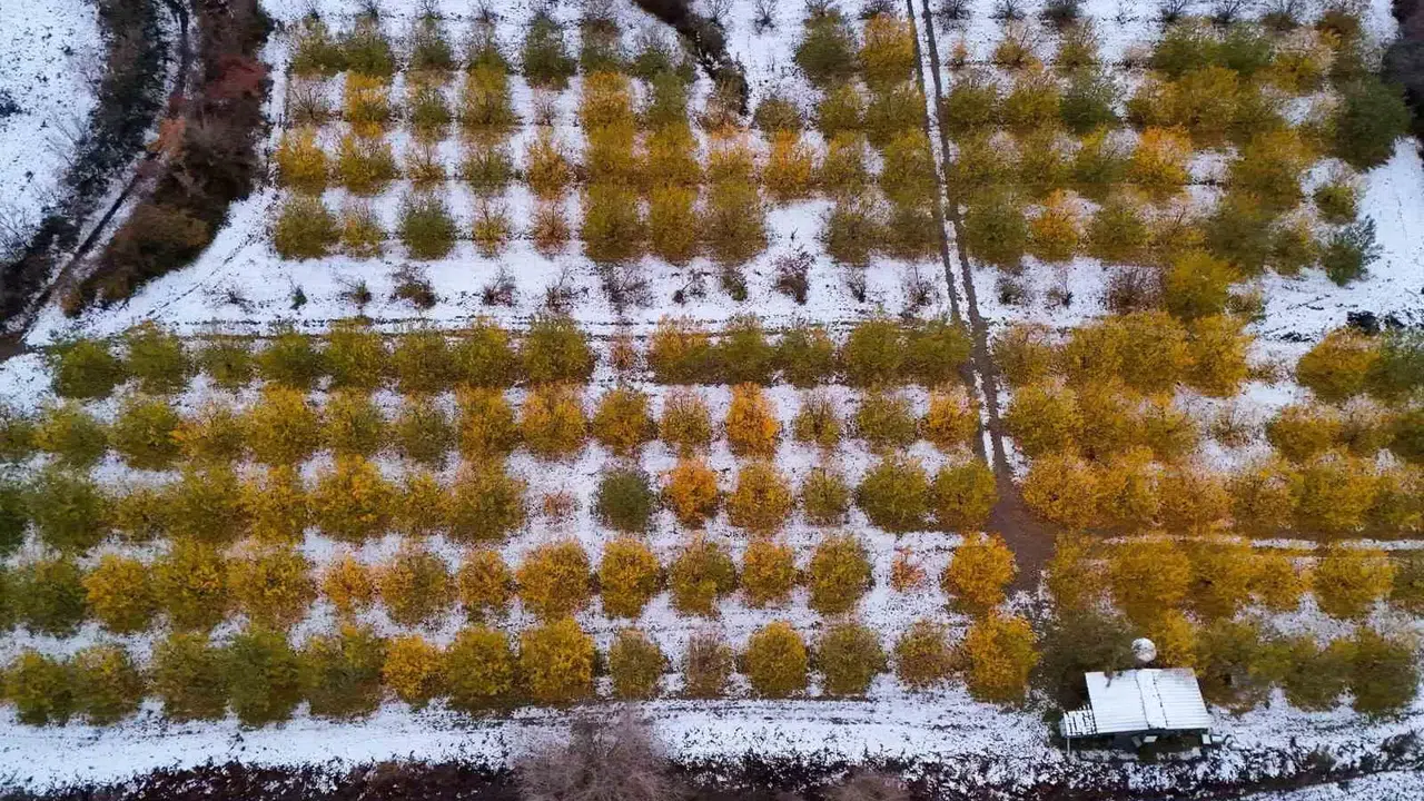 Uludağ eteklerindeki meyve ağaçları sonbaharın gelmesiyle renk cümbüşüne dönüştü. Önceki gün aniden bastıran kar yağışı sonrası beyaz örtüyü üzerine giyen doğa, sonbahar renkleriyle karışınca ortaya kartpostallık görüntüler çıktı. Bu muhteşem görüntüler fotoğraf sanatçısı Şaban Kılıçcı tarafından görüntüledi.