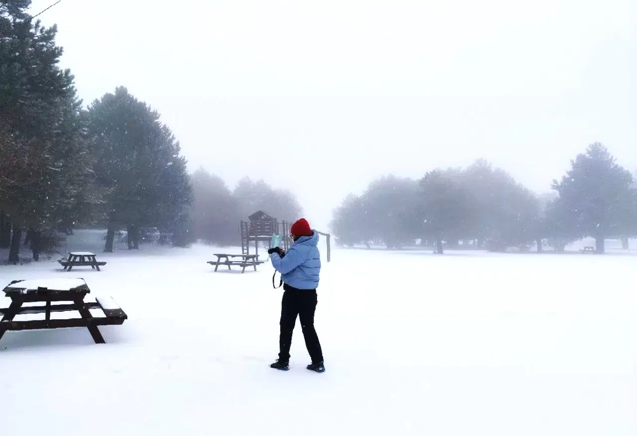 Karla kaplanan Spil Dağı Milli Parkı Atalanı günübirlik piknik alanında ise kartpostallık görüntüler oluştu.