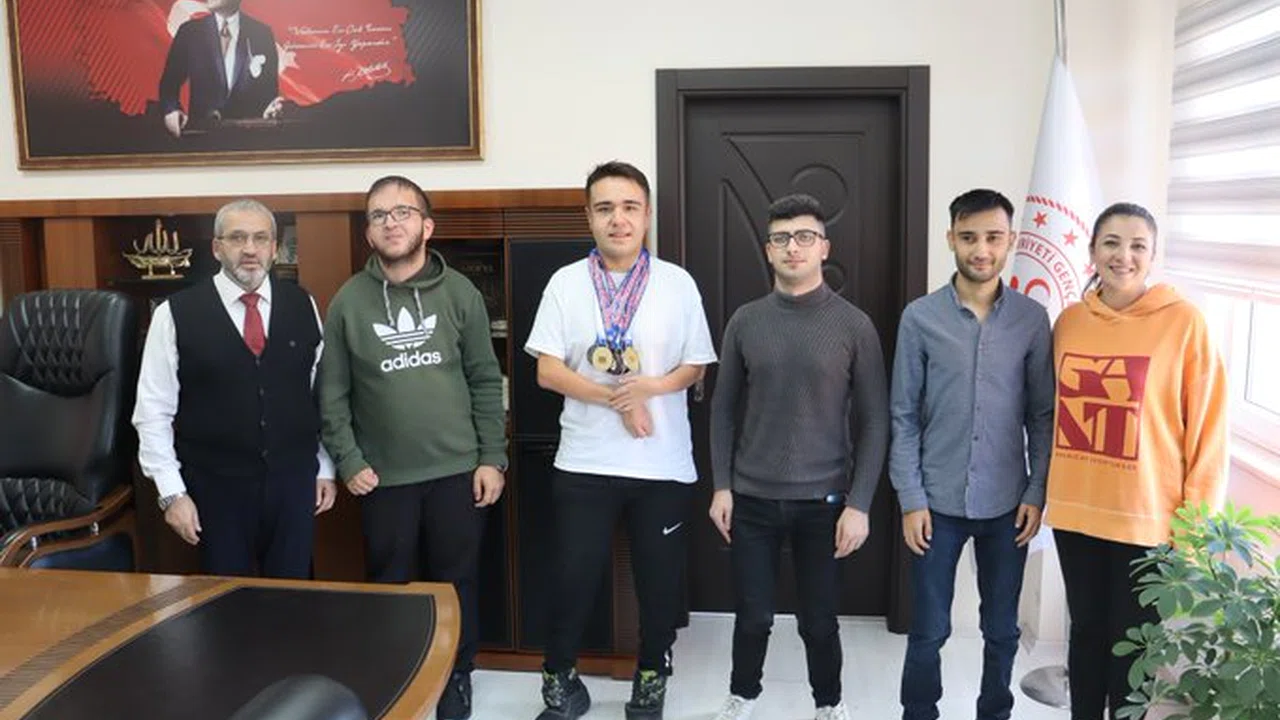 "Çorum Gençlik ve Spor İl Müdürümüz Cemil Çağlar, Şehit Eren Bülbül Dart Türkiye Şampiyonası Para Dart Müsabakalarında ilimizi temsil edecek sporcularımızı ve Dart Antrenörü Semra Doğan’ı makamında misafir ederek sporcularımıza müsabakalarda başarılar diledi." (Sümeyra Özdoğan)