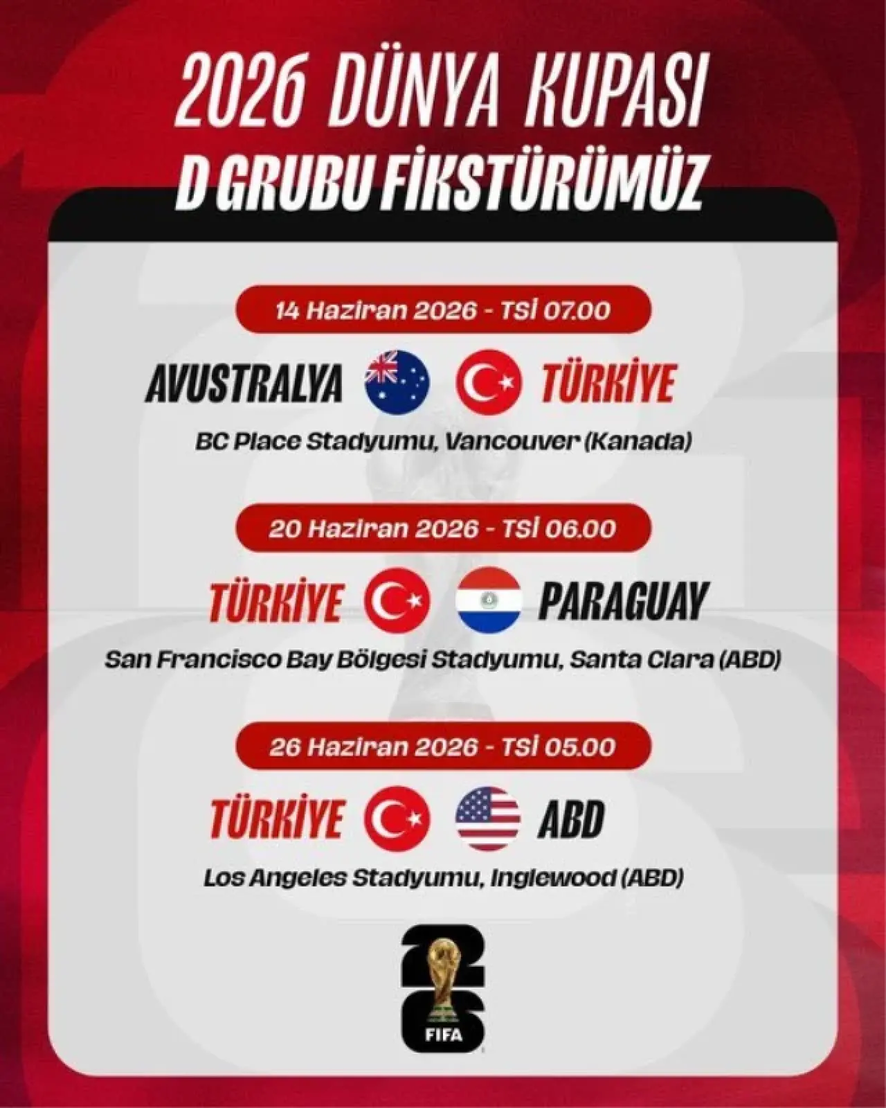 Dünya Kupası’nda Avustralya, Paraguay ve ABD ile karşılaşacak olan A Milli Takım’ın programında yapılan bu değişiklik, özellikle erken saat nedeniyle dikkat çekti.