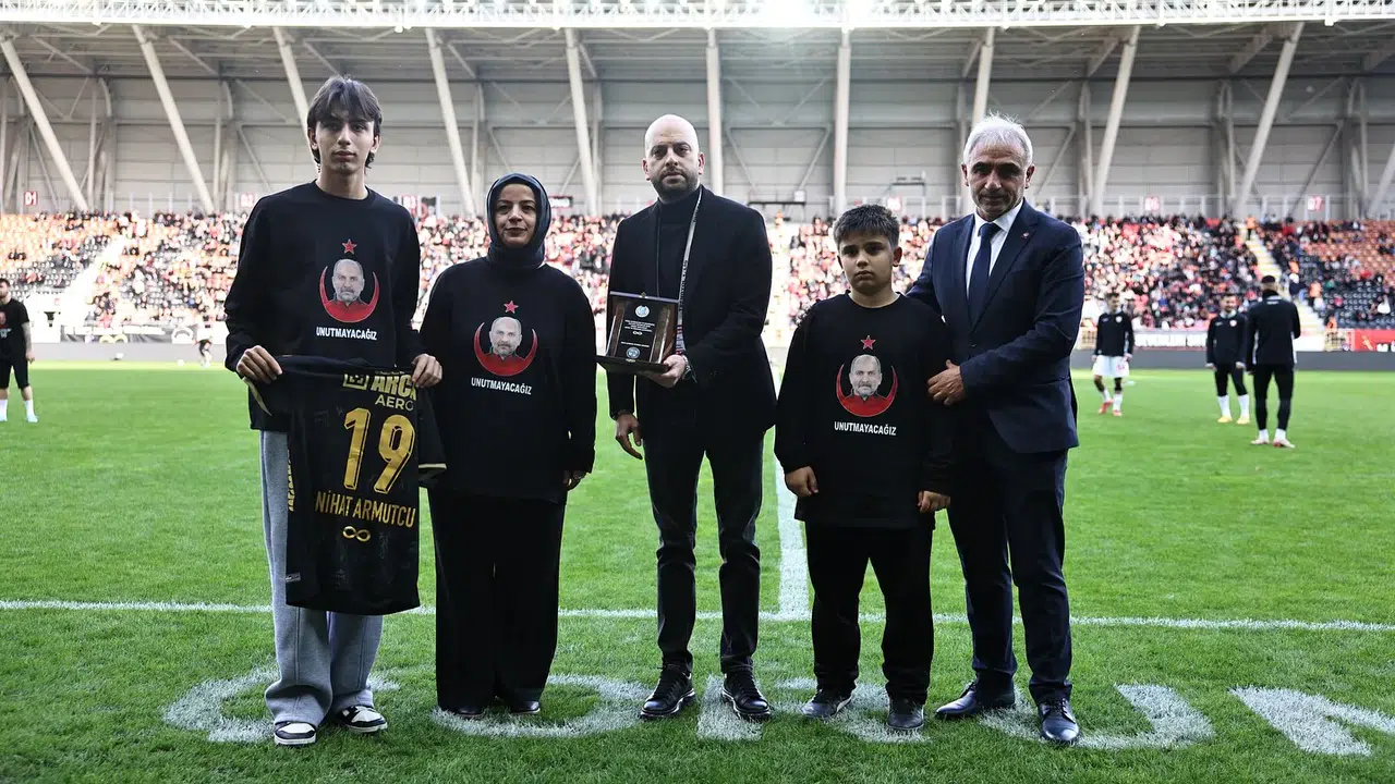 Ayrıca Kırmızı-Siyahlı oyuncular da ısınmaya üzerinde Nihat Armutcu’nun fotoğrafının olduğu siyah tişörtler ile çıktı. Tişörtün üzerinde “Kalbimizdesin Nihat Hoca” yazısı da yer aldı.