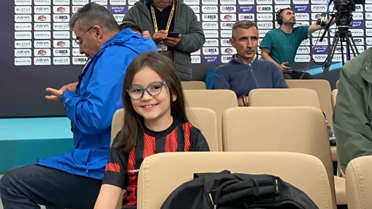 Kızının elinden tutarak basın mensuplarının karşısına çıkan genç teknik adam, önce kızını gazetecilerin yanına oturttu, ardından da mikrofonların başına geçerek maçı değerlendirdi.