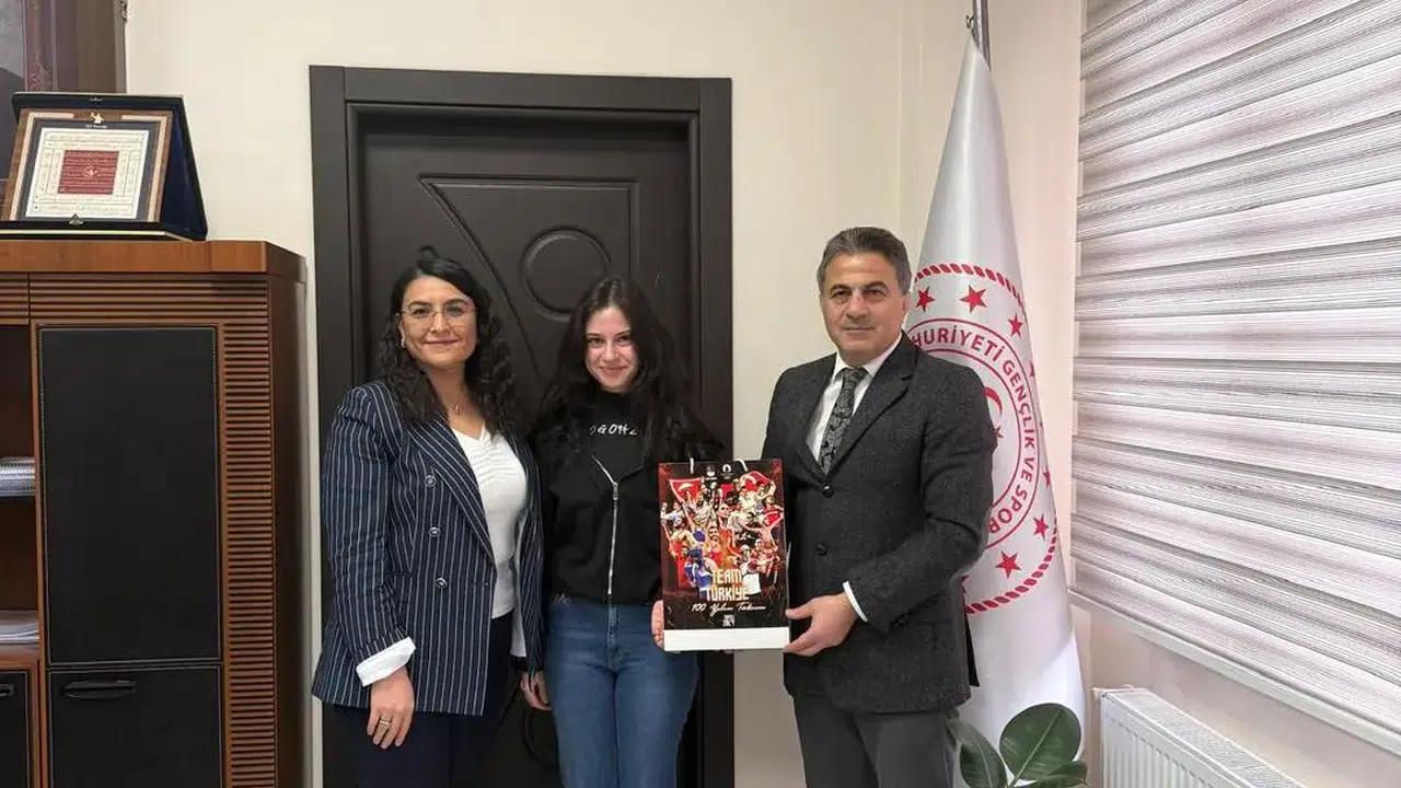 Hayrettin Karaman Yurdunda barınan Tıp Fakültesi 2. sınıf öğrencisi Neriman Güler, Gençlik ve Spor İl Müdürü Mustafa Demirkıran’ı makamında ziyaret etti. Ziyaret kapsamında gelecek hedeflerinden bahseden Güler, sporcu hekimi olmak istediğini dile getirdi. İl Müdürü Demirkıran, tıp fakültesi öğrencisiyle gerçekleştirdiği keyifli sohbetin ardından kendisinden başarılar dileyerek hediye takdiminde bulundu.
