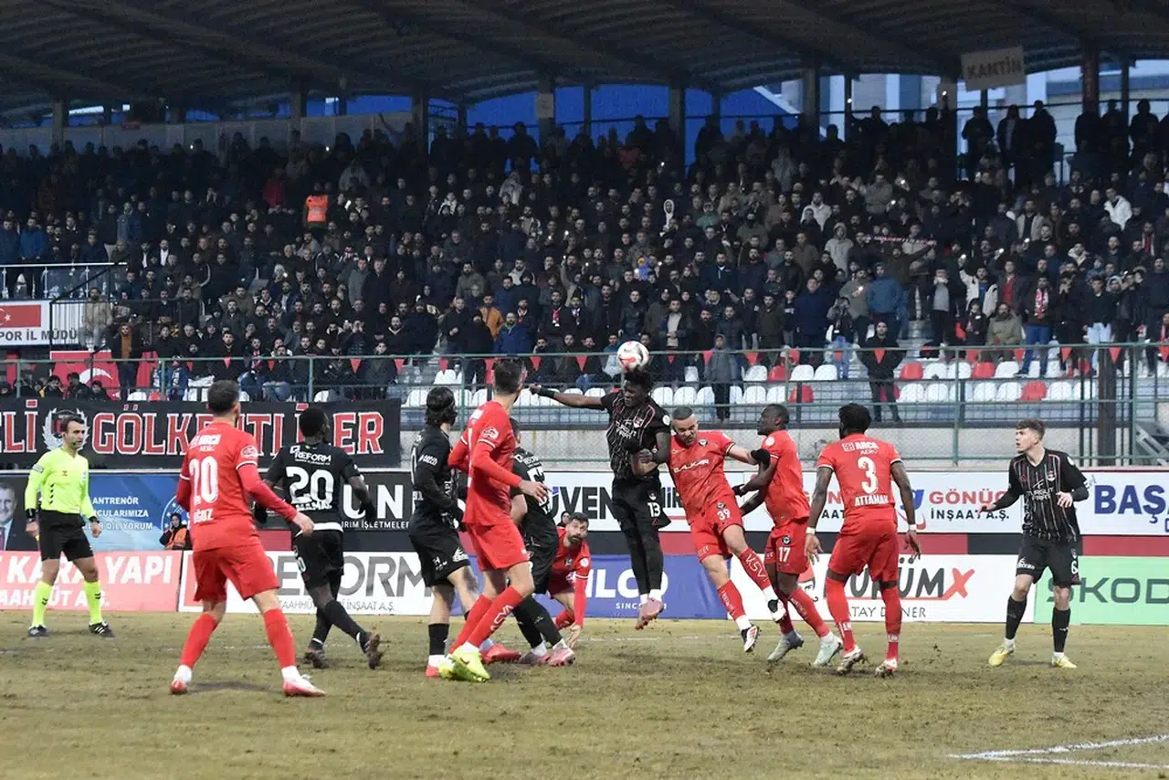 Müsabakanın başlama düdüğüyle birlikte oyunun kontrolünü eline alan Kırmızı Siyahlılar aradığı golü 14. dakikada Fredy’nin yaptığı ortayı arka direkte kafa vuruşuyla tamamlayan Serdar Gürler, kaleci ve savunmanın müdahale edemediği topu ağlarla buluşturarak takımını 1-0 öne geçirdi. Karşılaşmanın 29. dakikasında ön alanda yapılan pres sonucu Fredy’nin ortasında fileleri havalandıran Gürler’in golü, pozisyon başında faul gerekçesi ile VAR incelemesi neticesinde iptal edildi.