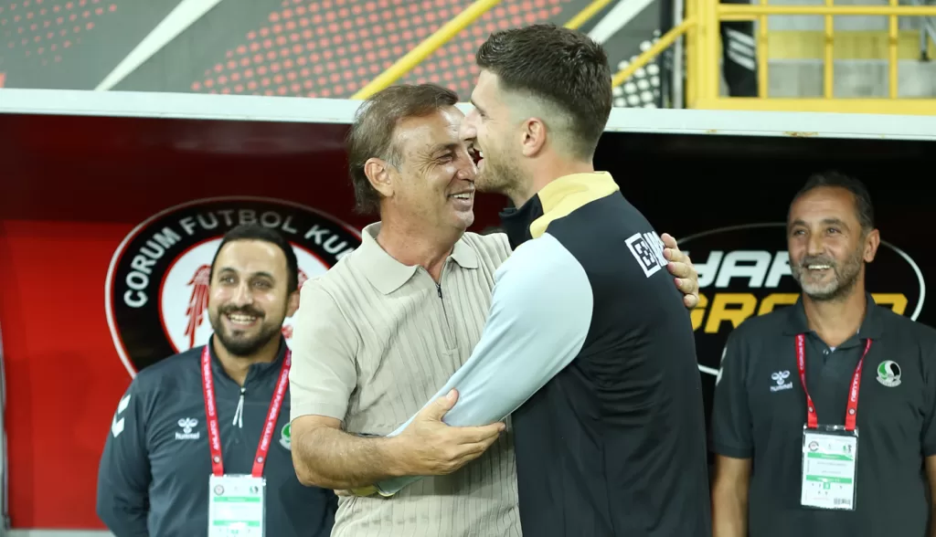 Trendyol 1’inci ligin 4’üncü haftasında sahalarda ender görülen olaylardan biri yaşandı. Ahlatcı Çorum FK ile Sakaryaspor’u arasında oynanan maçta Ahlatcı Çorum FK’li oyuncu Suat Kaya ile Sakaryaspor’un teknik direktörü Suat Kaya bir araya geldi.