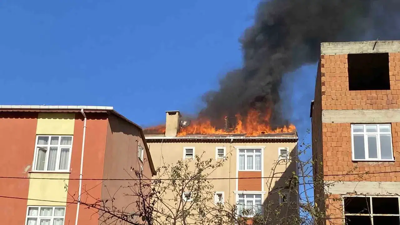 Sultanbeyli’de Apartman Çatısı Alev Alev Yandı