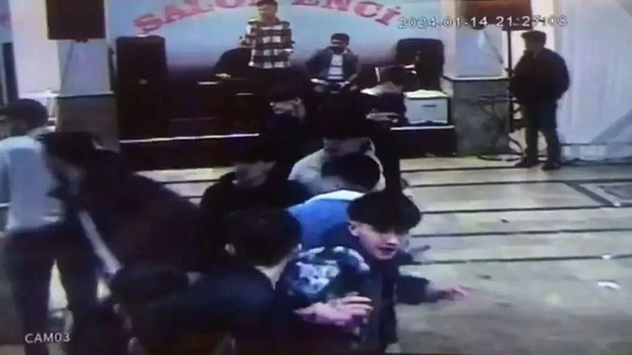 Olaya ait düğün salonunda çekilen yeni görüntüler ortaya çıktı. Görüntülerde bir kişinin halay çekerken grubun arasından koşarak geçtiği, saniyeler sonrasında ise salondakilerin sesleri duyarak paniklediği ve kaçıştığı görülüyor.