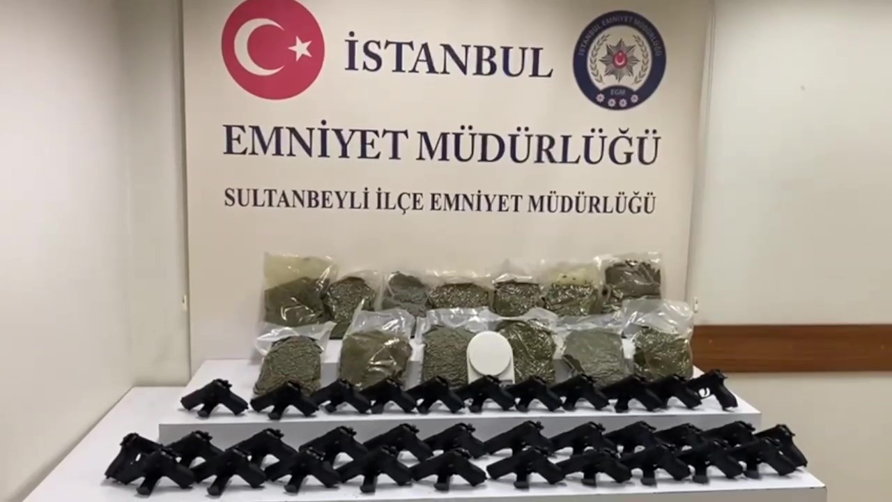 Adreste yapılan aramalarda 12,585 kilo bonzai, 33 adet ruhsatsız tabanca, 1 adet hassas terazi ele geçirildi.