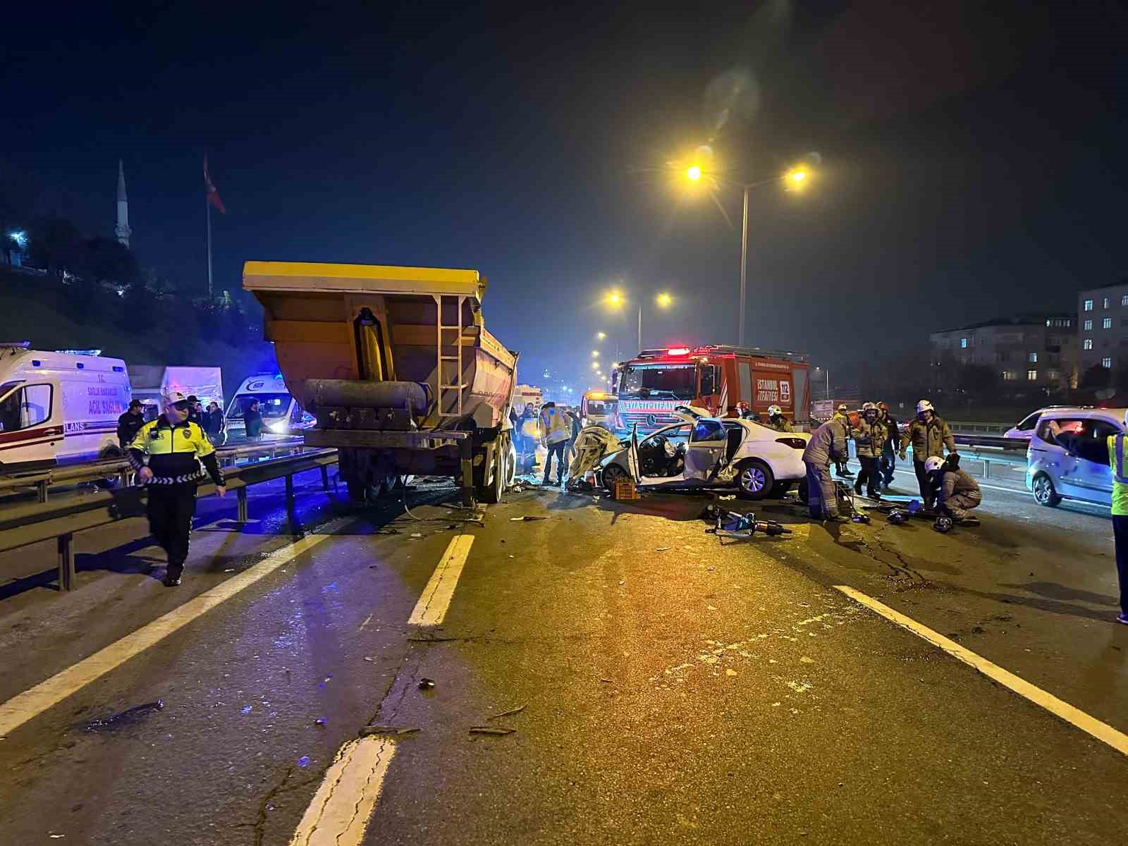 Olay, 22.30 sıralarında TEM otoyolu Metris Tekstilkent yönünde meydana geldi. İddiaya göre makas atarak ilerleyen Ebubekir C. yönetimindeki 34 BBA 976 otomobil yol kenarına bırakılan 59 ADM 223 plakalı arızalı dampere çarptı. Çarpma sonucunda otomobilde bulunan üç kişi araçta sıkıştı. Kazayı görenler ekiplere ihbarda bulundu.