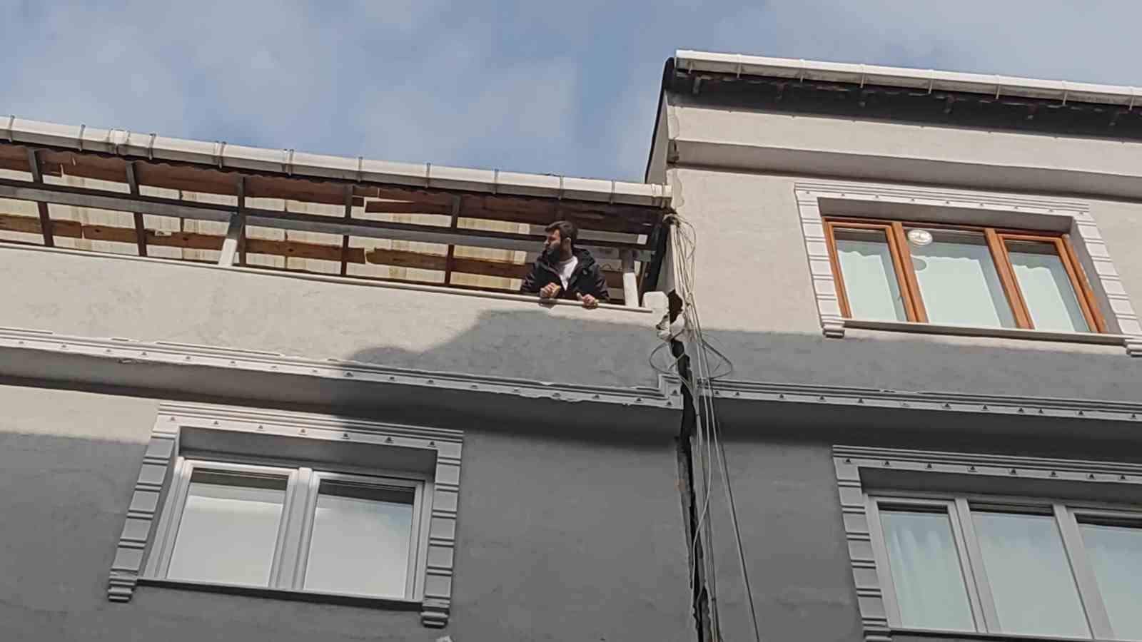 Bina sahiplerinden Mürsel Alkan, "Dün akşam değil önceki akşam iftar açıyorduk saat 18.00’da deprem gibi bir şey oldu. Biz kendimizi dışarıya zor attık. Baktığımızda bina iki taraftan 10 santim açılmış. Dün üniversiteden adamlar geldiler. İçeride kolonlara baktılar. Kolonlarda bir şey olmadığını söylediler. Yok da bu çatlaklık ne olacak. ’Belediyenin ve bizim raporumuzu bekleyeceksiniz’ dediler. Şu anda bina yıkılacak mı yıkılmayacak mı binamıza nereden gireceğiz bilmiyoruz. Bu duruma çok acil önlem almalarını talep ediyoruz" dedi.