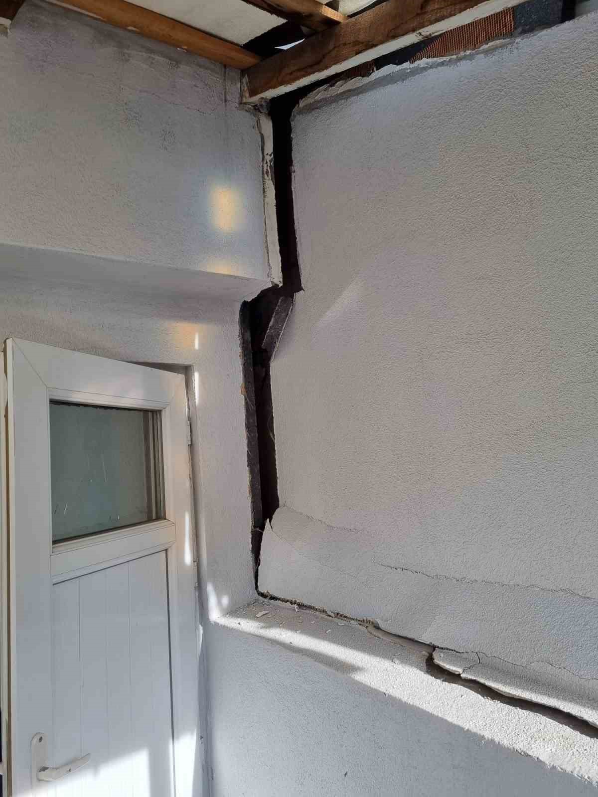 Yaşanan olayın ardından iki bina arasında derin boşluk oluştuğu görülürken, bina içerisinden çekilen görüntüde ise açıklık nedeniyle dışarının görünebildiği kaydedildi.