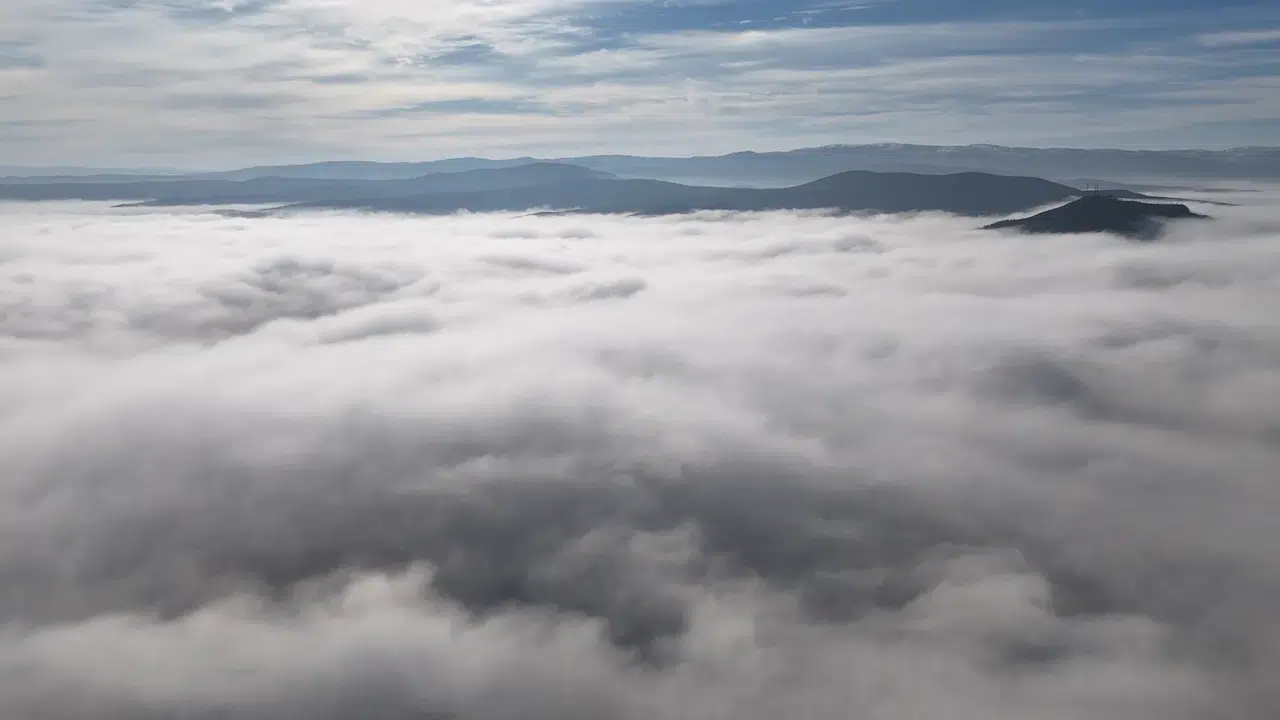 İlçe merkezinin üzerinin sis tabakasıyla kaplandığı görüntü, dronla kaydedildi.