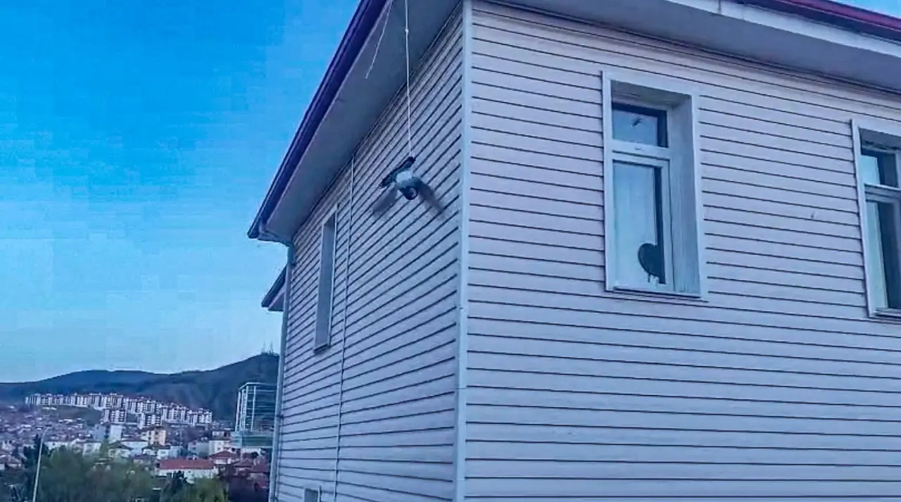 Çorum'un Sungurlu ilçesinde bir apartmanın çatısında ipe takılarak mahsur kalan güvercin, itfaiye ekipleri tarafından kurtarıldı.