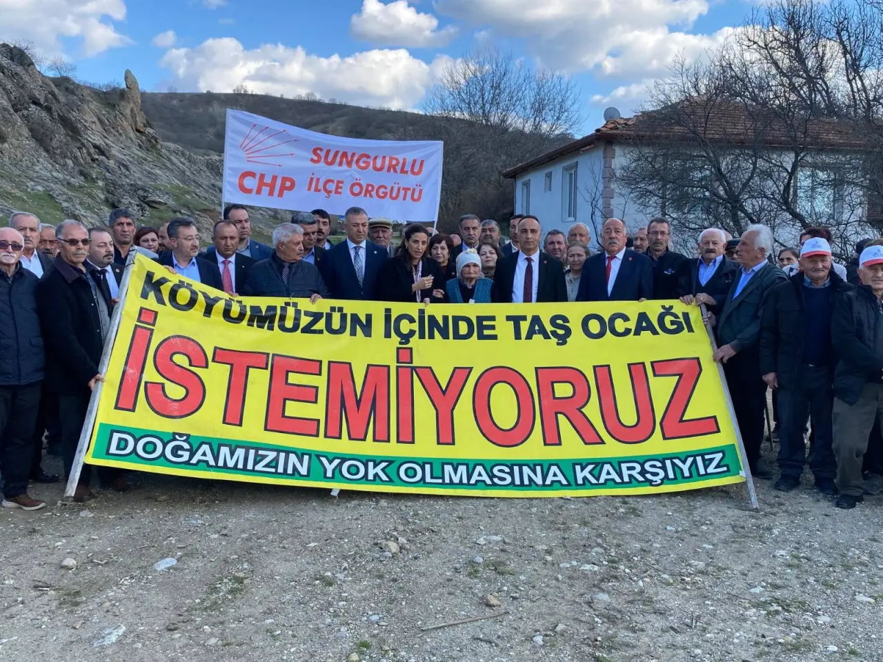 Çorum'un Sungurlu ilçesine bağlı Karakaya köyünde kurulması planlanan taş ocağı ile kırma ve eleme tesisine karşı yöre halkının bir yıldır sürdürdüğü haklı mücadeleye Cumhuriyet Halk Partisi heyeti alana giderek güçlü bir destek verdi.