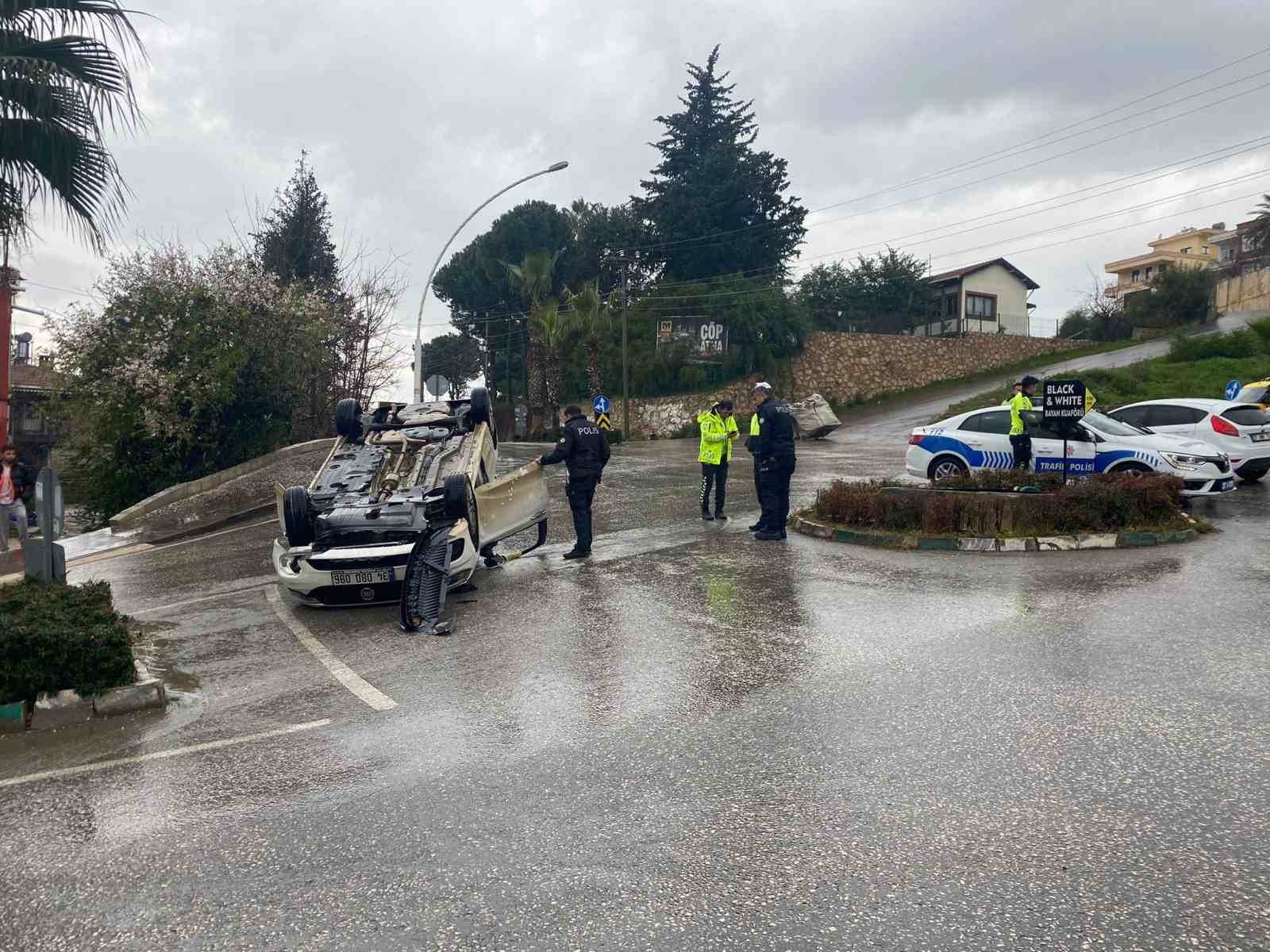 Antalya’nın Serik ilçesinde kavşak sisteminde ters dönen otomobilin sürücüsü yaralandı.