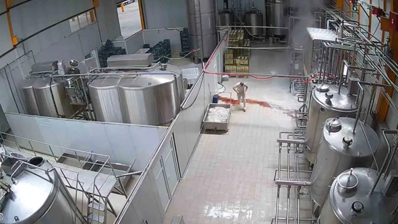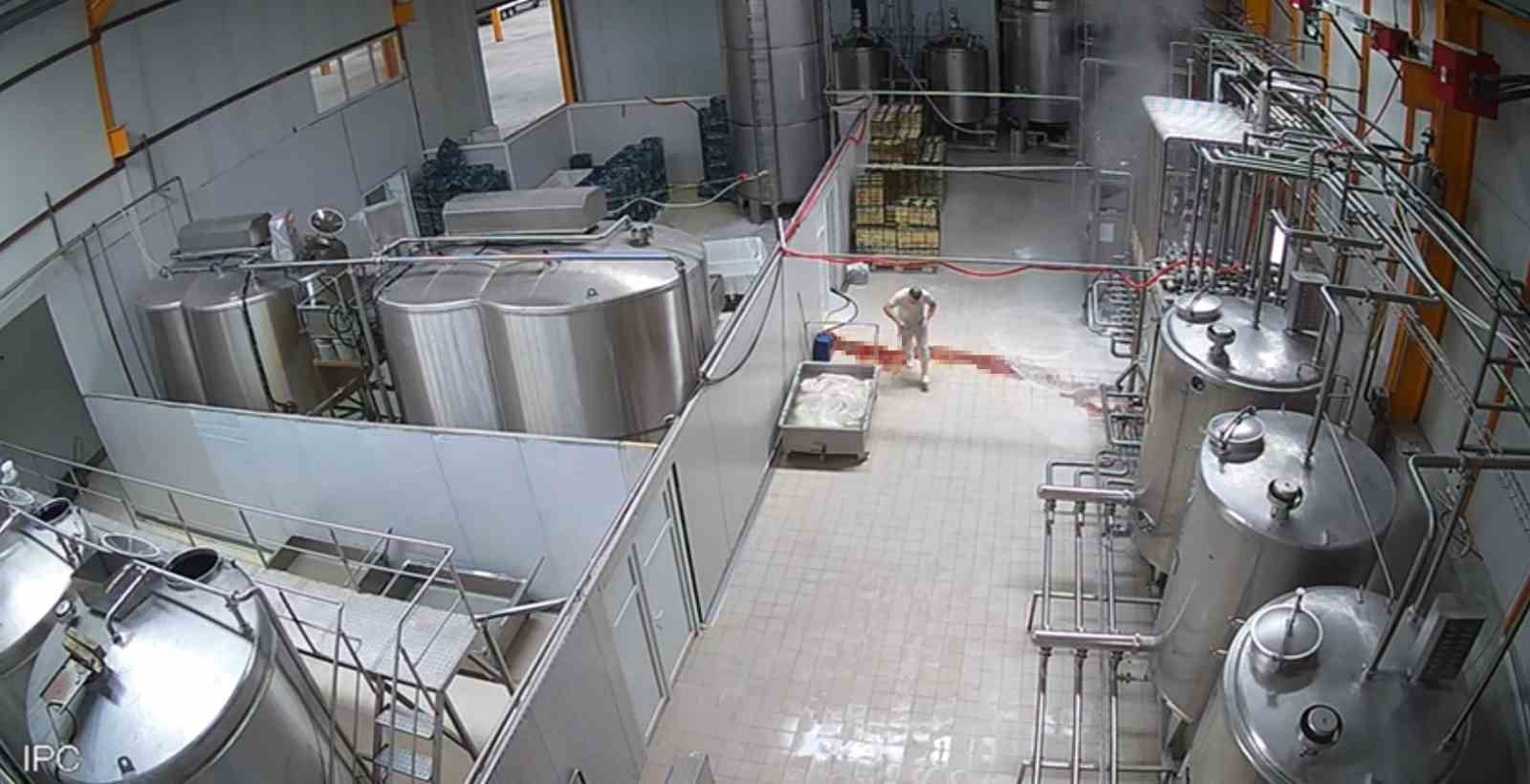 Kayseri’de süt kazanının patlaması sonucu meydana gelen iş kazası güvenlik kamerasına yansıdı.