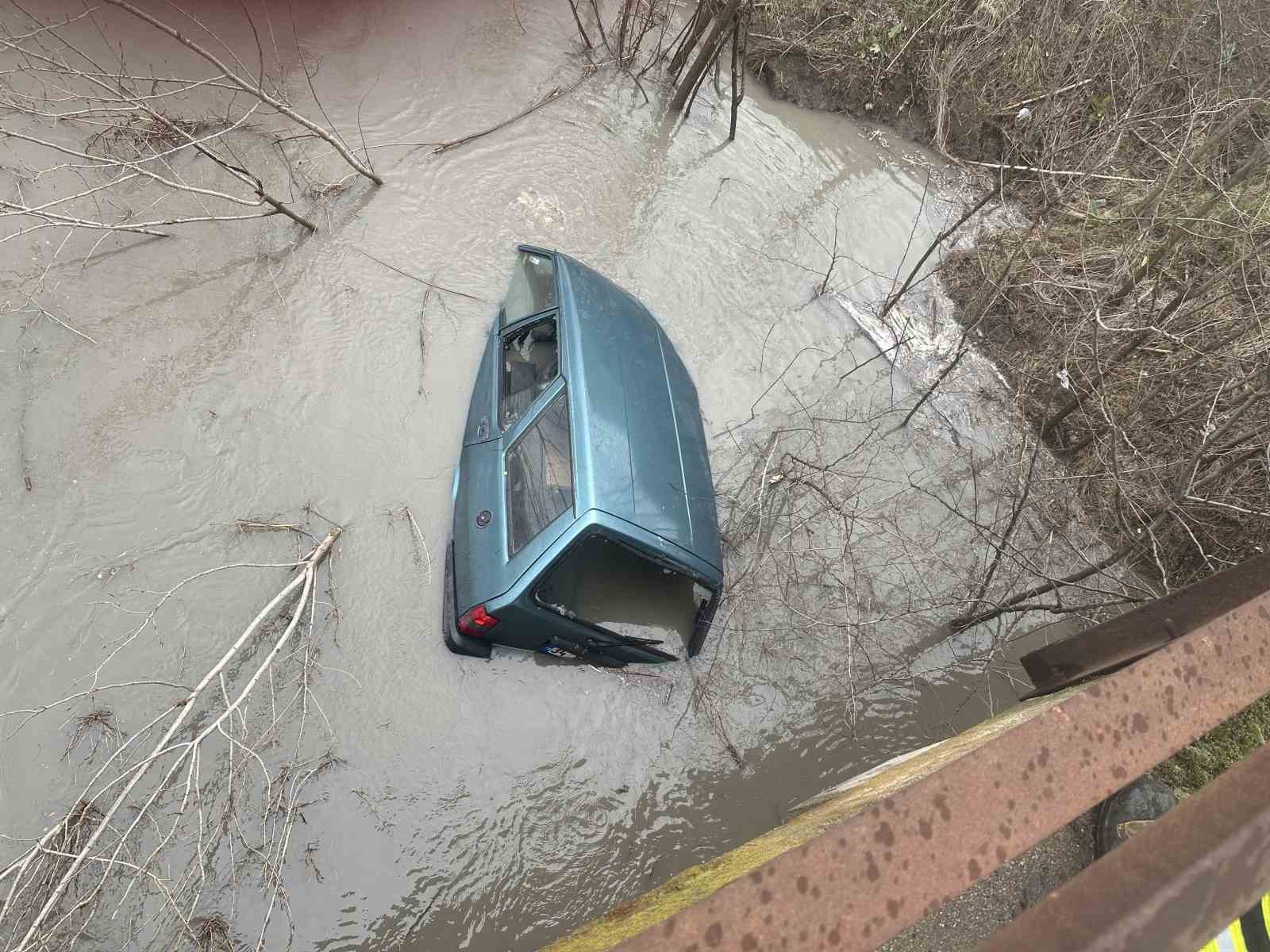 Tekirdağ’ın Muratlı ilçesinde otomobiliyle dereye uçan araç sürücüsü yaralandı.