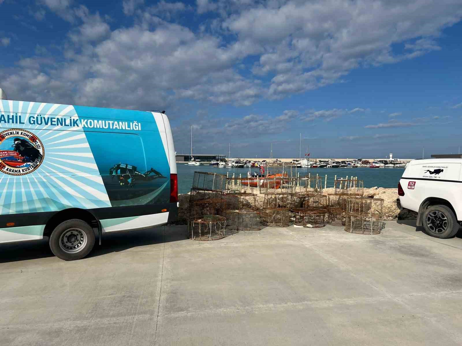 Hatay Sahil Güvenlik Doğu Akdeniz Grup Komutanlığı ekipleri denizlerde kontrollere devam ediyor. Bu çerçevede Degak-10 Özel Tim Komutanlığı ekipleri tarafından denizlerdeki sürdürebilir avcılığın devam etmesi ve nesli tükenme tehlikesi altında olan canlılara yönelik çalışmalar sürüyor. Ekipler, nesli tükenme tehlikesi altında olan Orfoz ve Lagos gibi türlerin korunması amacıyla çalışma gerçekleşti. Bu çalışmada 2023 yılı içerisinde denizlerimizde kullanılması yasak olan 140 kafes tespit edilip, içerisinde bulunan canlılar doğal yaşam alanlarına bırakıldı. Balıkların içerisinde mahsur kaldıkları kafesler, ekipler tarafından ele geçirildi.