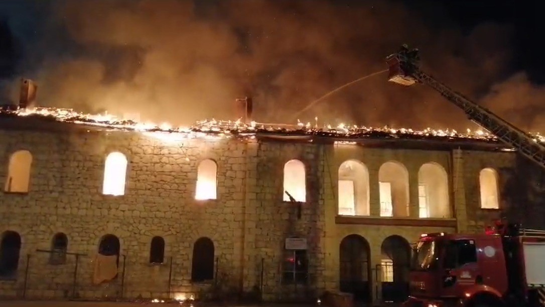 Mersin’de tahliye edilen ve tarihi bina olduğu için tadilat gören eski okul binasının çatısı alev alev yandı.