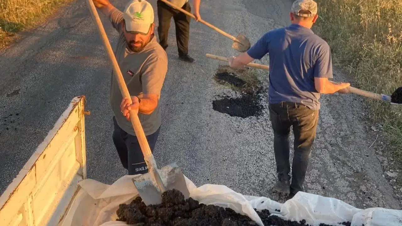Konu ile ilgili sosyal medya hesabından paylaşım yapan Tahtasız, yolların köstebek yuvasına döndüğünü ve köylülerin kendi imkanı ile bunu düzeltmeye çalıştığını belirtti.
