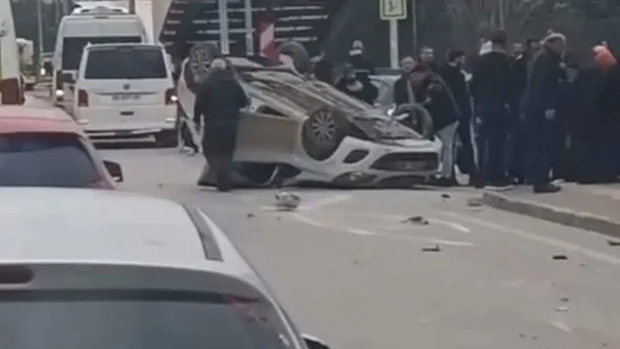 Bursa’da sürücüsünün kontrolünden çıkan otomobil takla attı. Sürücü şans eseri burnu bile kanamadan kurtuldu.