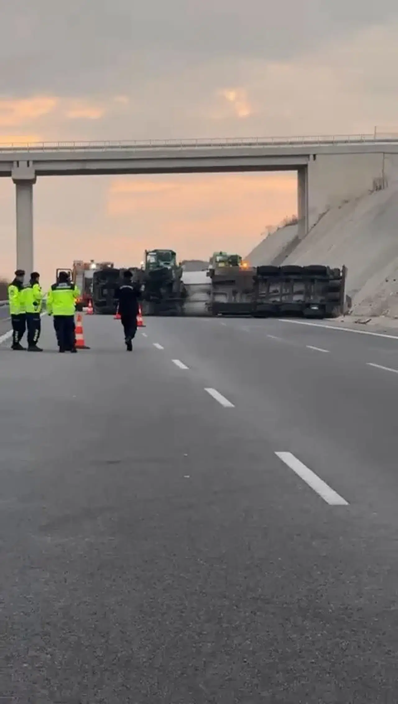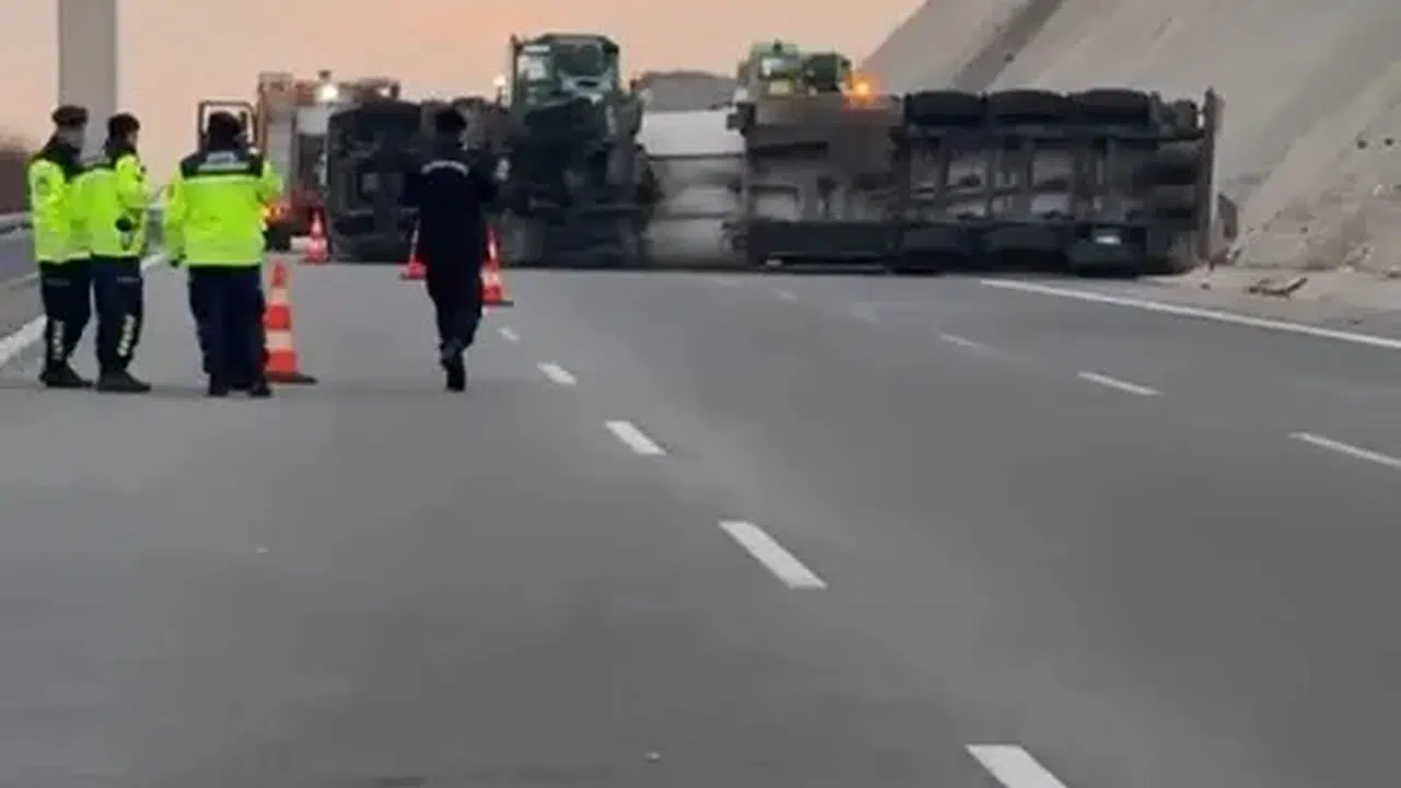 Bursa-İzmir otobanı Karacabey mevkiinde sürücünün kontrolünden çıkan benzin tankeri yola devrildi. Devrilen tanker yolu tamamen kapattı. İhbar üzerine olay yerine gelen jandarma ekipleri çevrede güvenlik önlemi alırken, kapanan yolda yaklaşık 25 kilometrelik trafik oluştu.