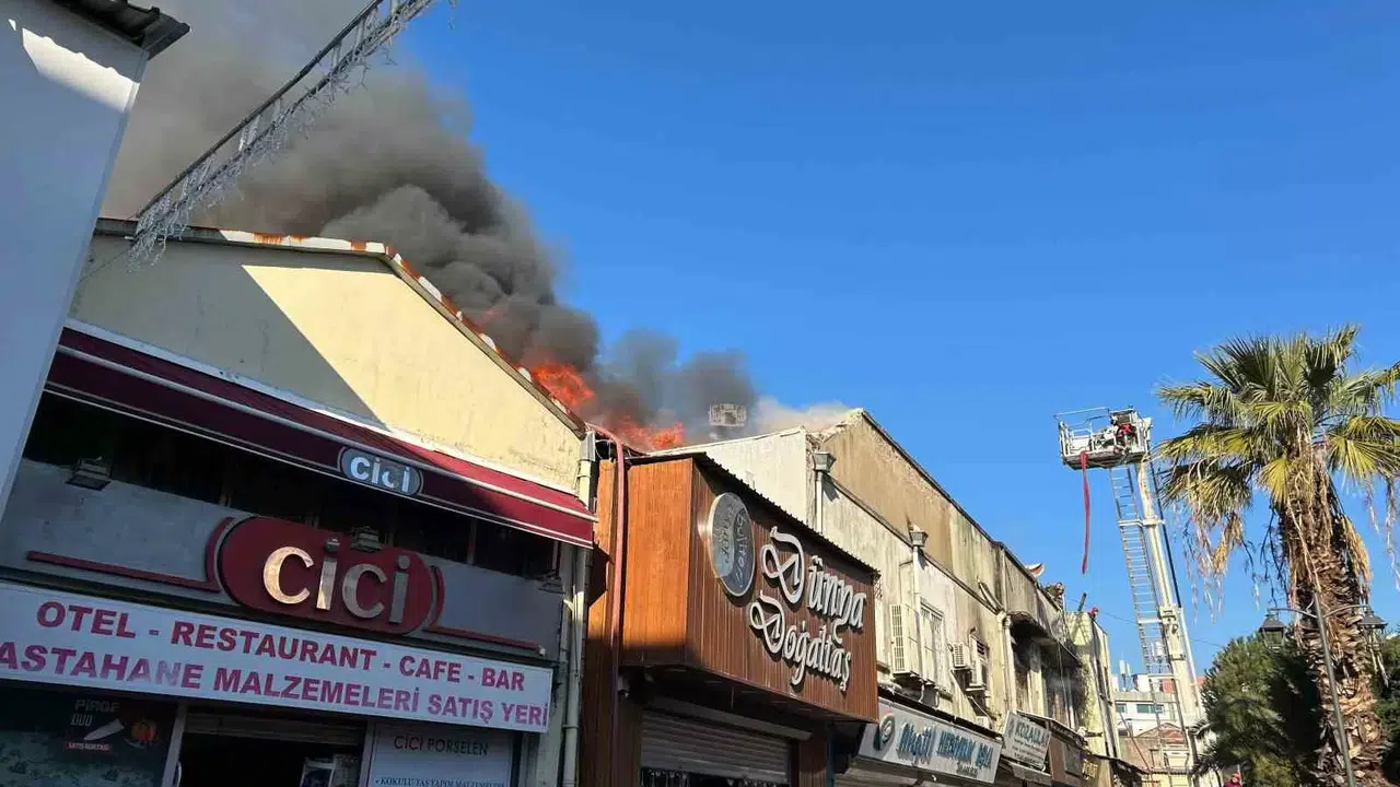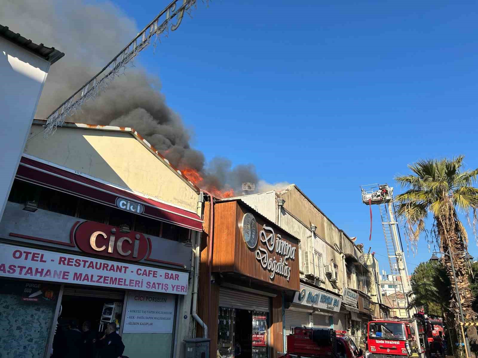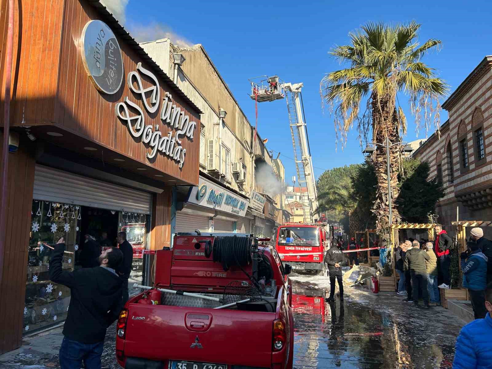 İzmir’in tarihi Kemeraltı Çarşısı’nda Kızlarağası Hanı karşısında bulunan iş yerinin 2. katında henüz sebebi belirlenemeyen bir yangın meydan geldi.