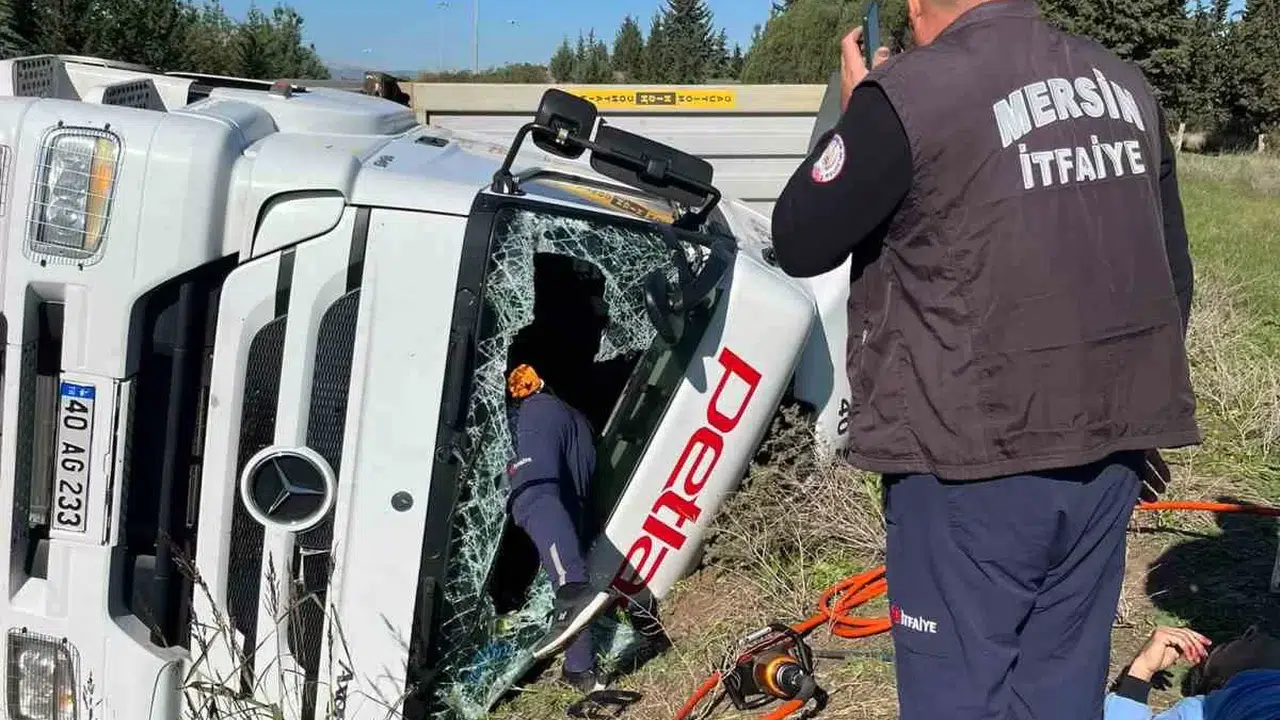 Alınan bilgiye göre, Eski Ankara yolu Karayayla mevkisinde A.Y.’nin sürücülüğünü yaptığı 40 AG 233 çekici plakalı tır henüz bilinmeyen bir nedenle kontrolden çıkarak devrildi. Kaza nedeniyle zarar gören kupa içerisinde sıkışan sürücü, ihbar üzerine olay yerine intikal eden Mersin Büyükşehir Belediyesi itfaiye ekipleri tarafından çıkartıldı ve sağlık ekiplerine teslim edildi.
