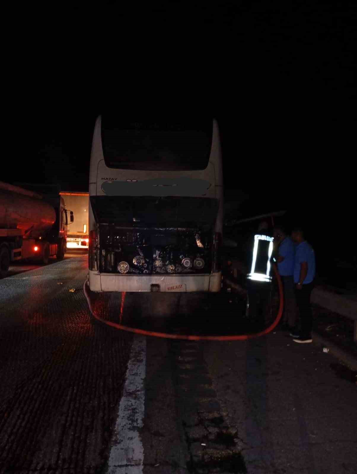 Alınan bilgiye göre, Otoyol Tarsus-Pozantı istikameti Damlama kantar bölgesinde seyir halinde olan ve içerisinde yolcu bulunan R.A.’nın kullandığı 31 AAB 427 plakalı şehirlerarası otobüsün motor kısmında elektrik sisteminden çıktığı tahmin edilen yangın meydana geldi. Durumu fark eden sürücü aracı güvenlik şeridinde durdurdu. İhbar üzerine olay yerine intikal eden Mersin Büyükşehir Belediyesi İtfaiye ekipleri müdahale ederek alevleri söndürdü. Şans eseri yaralananın olmadığı olayda araçta zarar meydana geldi.