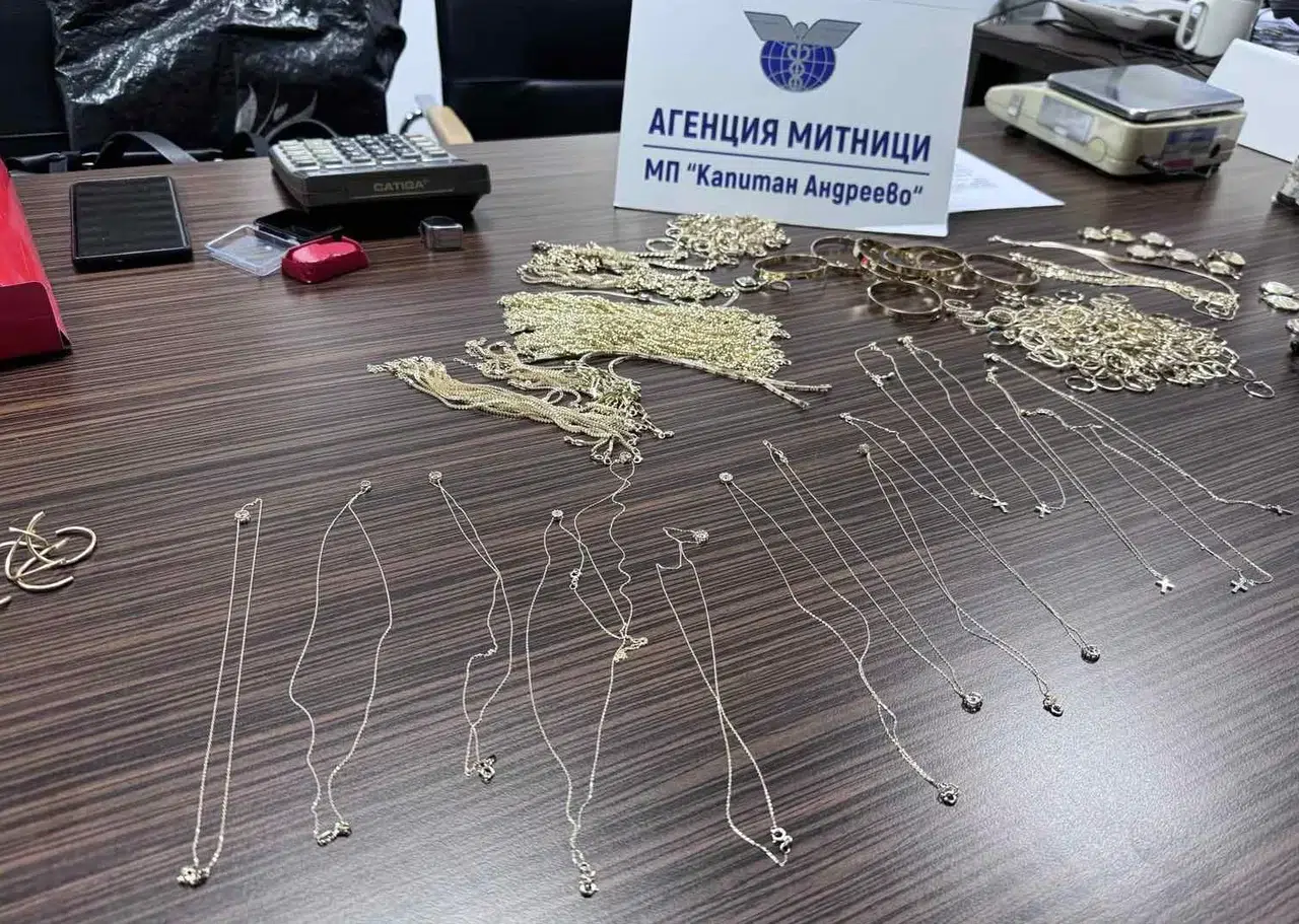 Uzmanın yaptığı inceleme sonucunda şüpheli şahıstan yüzük, madalyon, zincir, bilezik gibi ürünler olmak üzere, 14 ve 22 ayar altından yapılan 876,90 gram kaçak altın ele geçirildi. Haskovo Bölge Savcılığı’nın gözetiminde soruşturmacı bir gümrük müfettişi tarafından duruşma öncesi işlem başlatıldı.