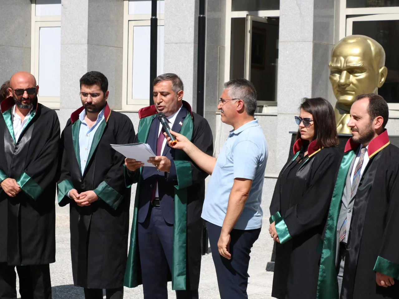 Olayın ardından 81 ildeki barolar, ortak bir basın açıklaması yaparak tepkilerini dile getirdi. Çorum’da da Çorum Barosu’na bağlı avukatlar, adliye önünde toplandı.