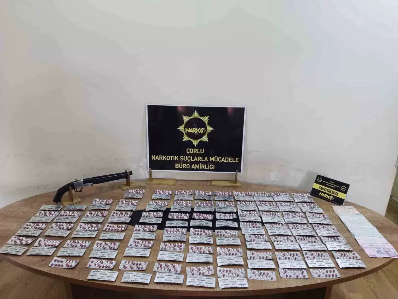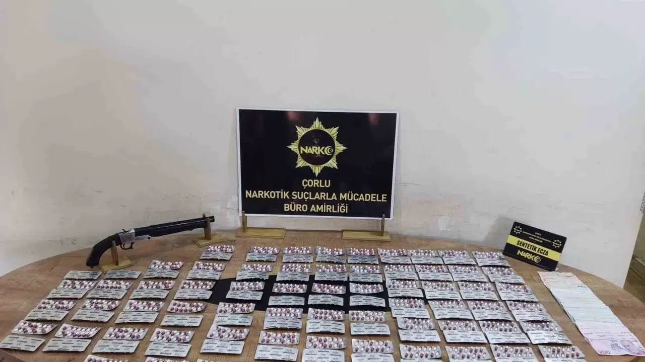 Tekirdağ’ın Çorlu ilçesinde bir depo ve ikamette yapılan aramada bin 876 adet sentetik ecza hap, para ve silah ele geçirilirken, olayda 1 kişi tutuklandı.