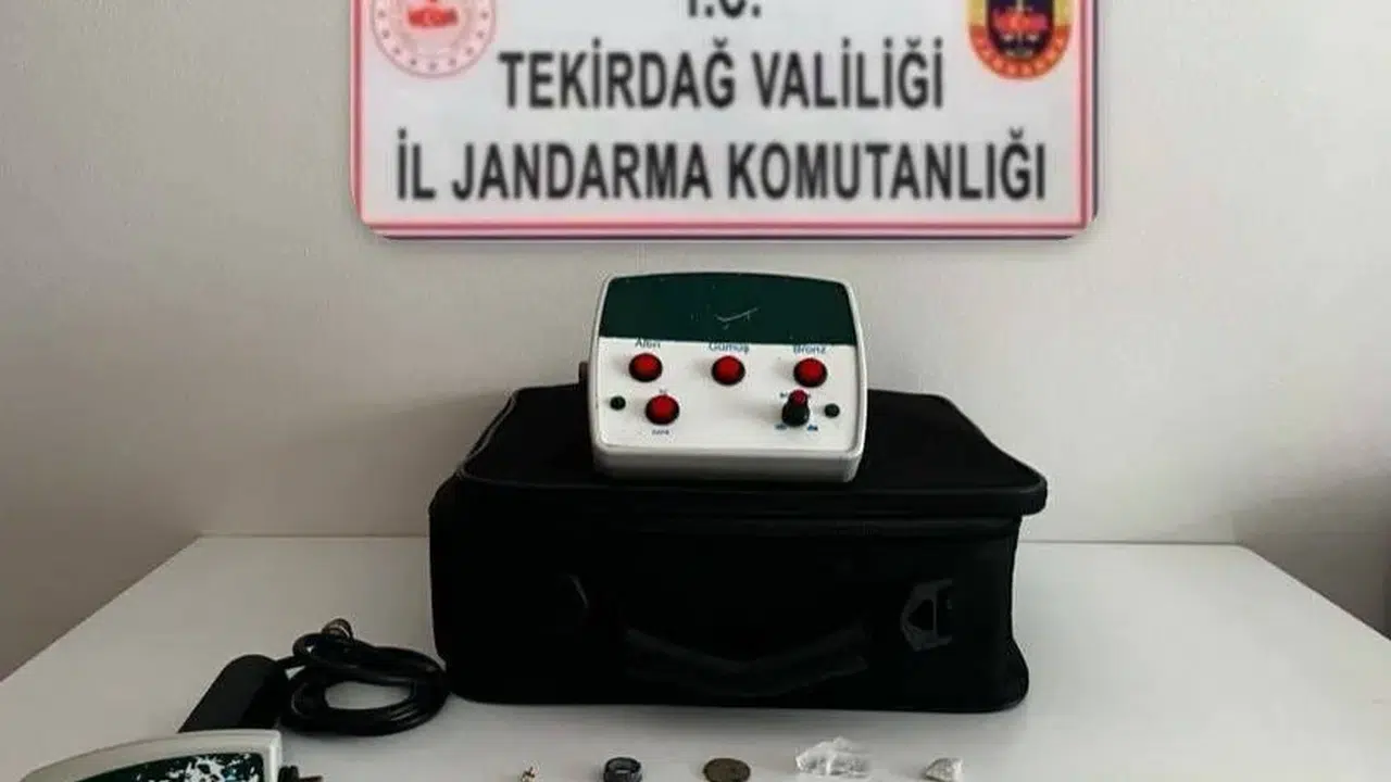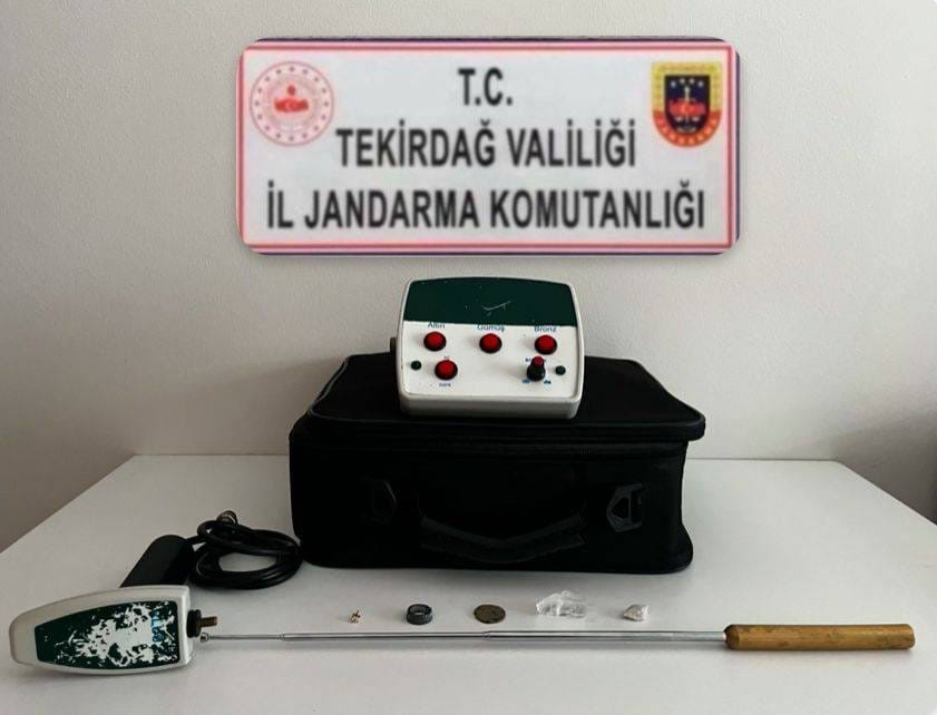 Tekirdağ İl Jandarma Komutanlığı ekiplerince 30 Ocak 2025 tarihinde Kapaklı ilçesi Bahçeağıl Mahallesi’nde T.P., Y.K., Y.Ç., Y.A. ve E.E.’nin bulunduğu araçta yapılan kontrolde 1 adet dedektör, 1 adet sikke, 2 adet taş parçası, 1 adet küpe ve 1 adet yüzük ele geçirildi.