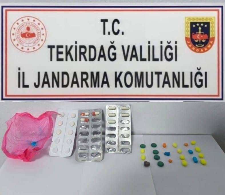 Tekirdağ İl Jandarma Komutanlığınca, Muratlı Kırkkepenekli Mahallesi’nde A.G. isimli şahsın üstünde ve aracında yapılan aramada 22 adet ecstasy hap, 2 gram öğütülmüş uyuşturucu hap ve 14 adet sentetik uyuşturucu hap ele geçirildi.