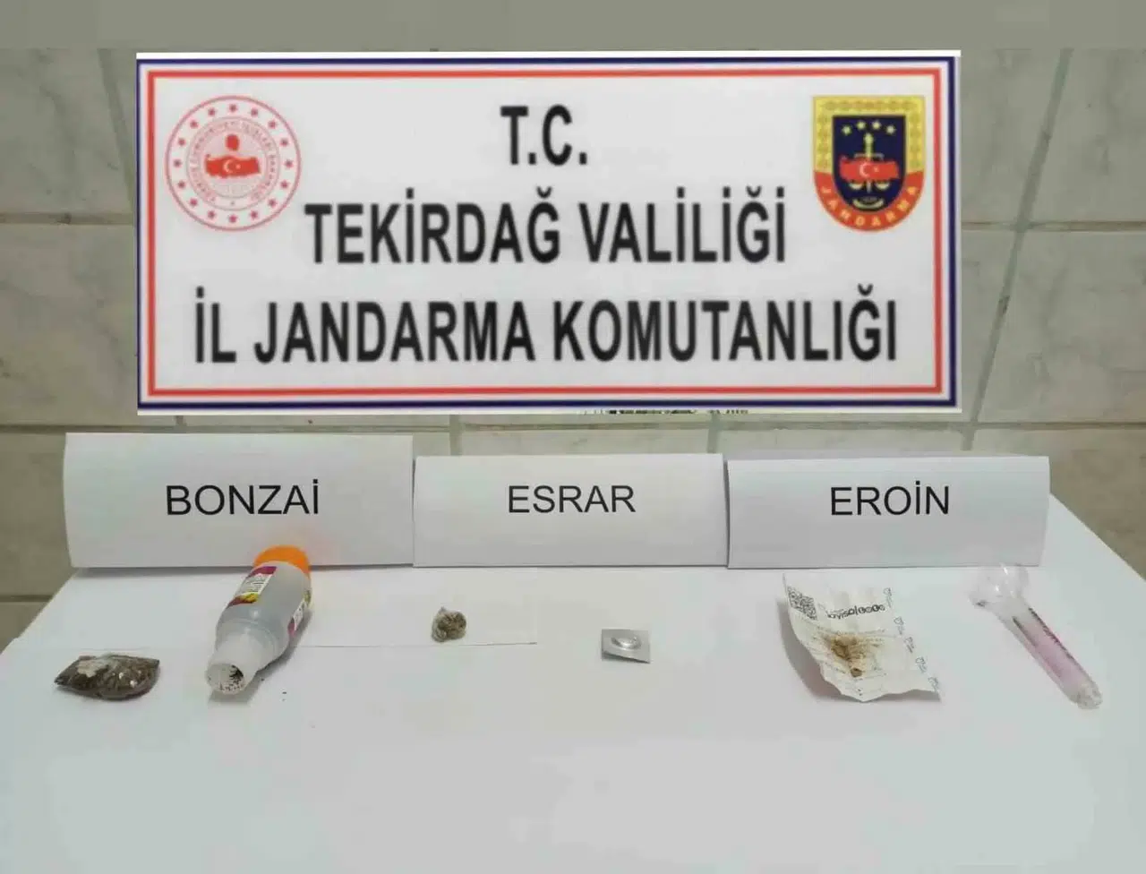 Çerkezköy Atatürk Mahallesi’nde kaba üst araması yapılan A.P. isimli şahsın üzerinde, 1 adet sigara kağıdı ile 3 gram esrar bulundu. Aynı gün Çorlu Önerler Mahallesi’nde gerçekleştirilen başka bir operasyonda ise E.Ö., S.Y., K.S. ve Y.K. isimli şahısların üst aramalarında çeşitli uyuşturucu maddeler ele geçirildi. Bu operasyonlarda 1 gram eroin, 1 adet suboxone, 20 gram bonzai, 1 gram esrar ve 1 adet uyuşturucu kullanma aparatı bulundu.