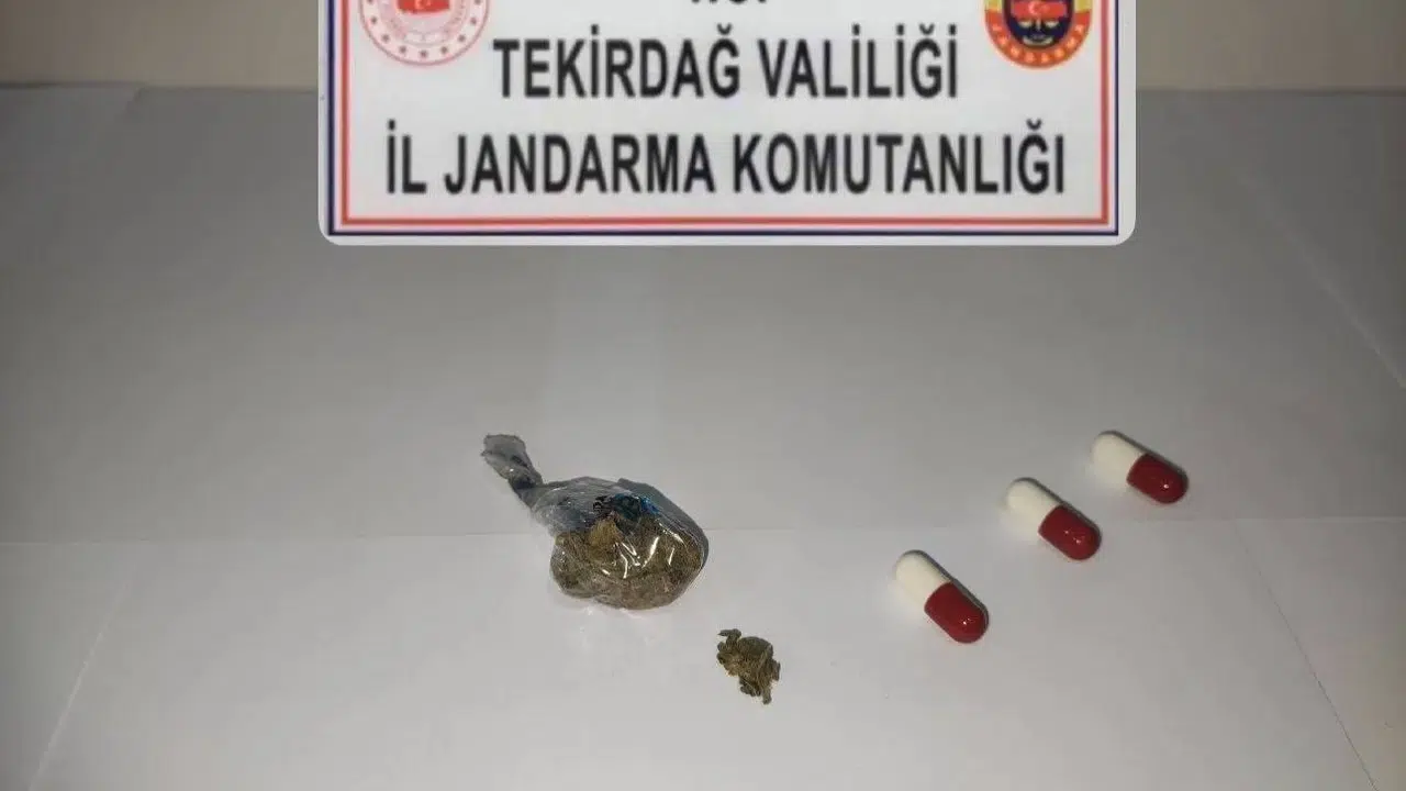Tekirdağ İl Jandarma Komutanlığı ekiplerince gerçekleştirilen operasyonlarda 3 gram esrar, 3 adet sentetik hap, 1 tabanca ve 3 mermi ele geçirildi.