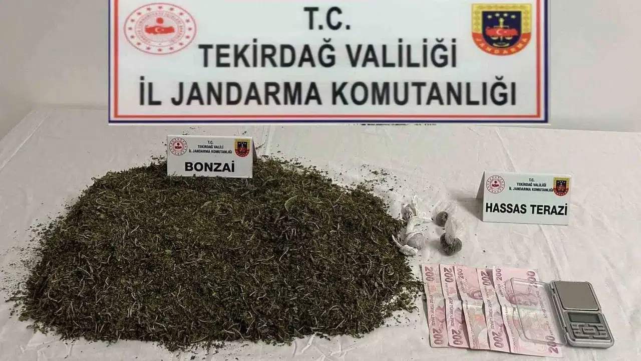Tekirdağ İl Jandarma Komutanlığı ekiplerince Kapaklı Bahçelievler Mahallesi’nde T.K. isimli şahsın evinde yapılan arama sonucunda 2 kilo 40 gram bonzai, 4 fişek bonzai, 10 gram bonzai, 1 adet hassas terazi ve bin TL suçtan elde edilen para ele geçirildi.