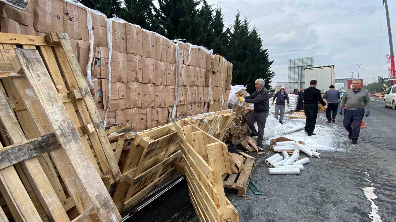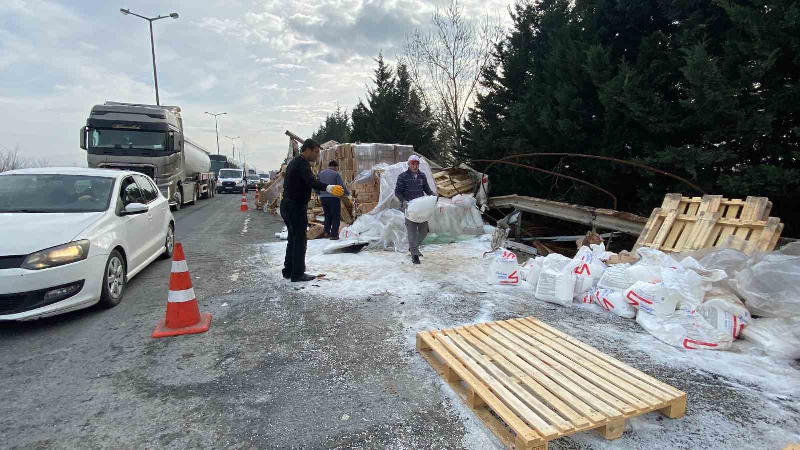 Tem Otoyolu’nun Kocaeli geçişinde kontrolden çıkan plastik ham madde ve streç film yüklü tır devrildi. Kaza sebebiyle otoyolun İstanbul istikametinde trafik yoğunluk yaşandı.