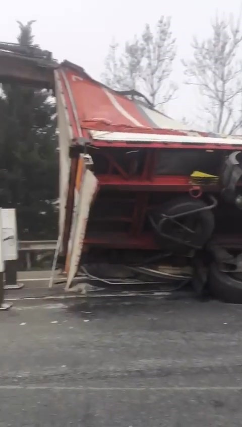 Tem’de Kontrolden Çıkan Tır Devrildi