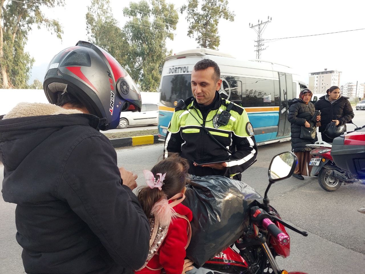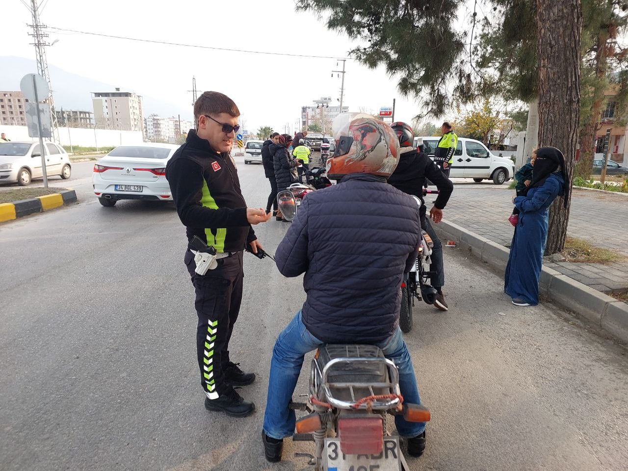 Hatay’da polis ekipleri çalışmalarını yılın ilk gününde de sürdürdü. Dörtyol’da İlçe Emniyet Müdürlüğü Trafik Şube ekipleri tarafından ilçe genelinde tonajlı tır, kamyon, modifiye edilmiş ve tescilsiz motosikletler üzerinde uygulama yapıldı. Kontrollerde; 10 adet tescilsiz motosiklet ve yakalaması olan 1 adet araç trafikten men edilerek gerekli işlemler yapıldı. Gerçekleştirilen uygulamalarda vatandaşların da polis ekiplerine destek oldukları gözlemlendi. Dörtyol genelinde bu tür uygulamaların sıklıkla devam edeceği öğrenildi.