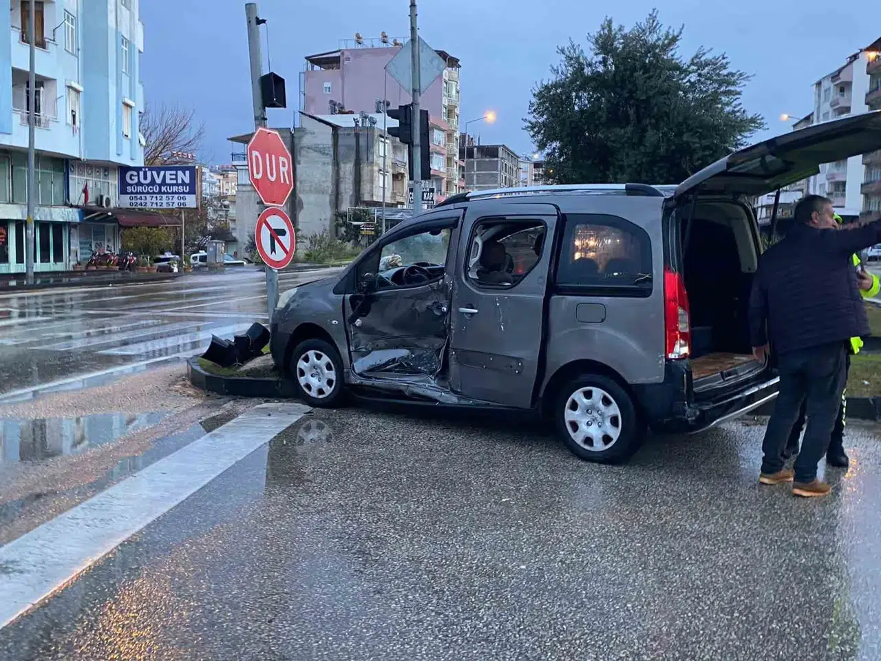 Kaza, sabah saatlerinde Antalya’nın Serik ilçesi D 400 kara yolu Kadıoğlu Kavşağı’nda meydana geldi. Adil K.’nin kullandığı 07 AJR 445 plakalı Peugeot marka ticari araç ile Uğur D.’nin kullandığı 26 HC 139 plakalı Volkswagen marka minibüs kavşak sisteminde çarpıştı. Kaza sonrası ihbar üzerine olay yerine 112 sağlık ve polis ekipleri sevk edildi. Sürücüler ve yolcuların yara almadığı kazada ticari araç sahibi Adil K.’nin aracı yeni satın aldığı öğrenildi. Kaza sonrası inceleme başlatılırken, vatandaşlar sürekli kaza meydana gelen kavşak için üst geçit yapılması gerektiğini söylediler.
