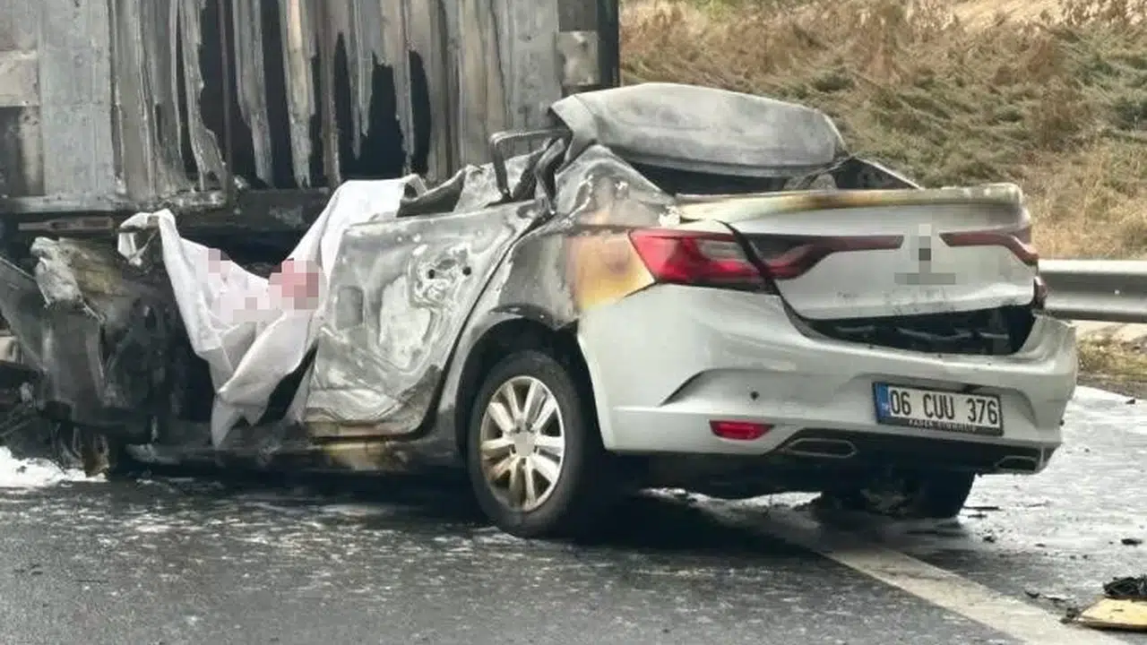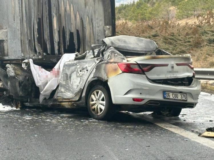 Ankara’da çevre yolunda tıra arkadan çarparak alev alan otomobildeki bir kişi hayatını kaybetti.