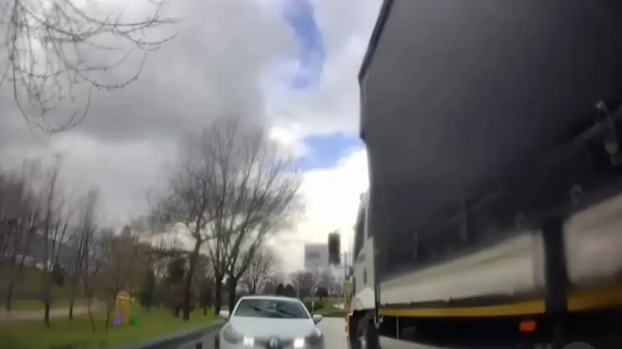 Merkez Yıldırım ilçesi Yakın çevre yolunda seyir halindeki otomobil şerit değiştirince orta şeritte ilerleyen tırın çarpmasıyla bariyerlere savruldu. Çevredekiler otomobildeki sürücünün yardımına koşarken, 112 ekiplerine de bilgi verildi. İhbar üzerine gelen ekipler kazadan yara almadan kurtulan sürücüye ambulansta müdahalede bulundu. Kaza anı ise araç içi kamerasına anbean yansıdı.