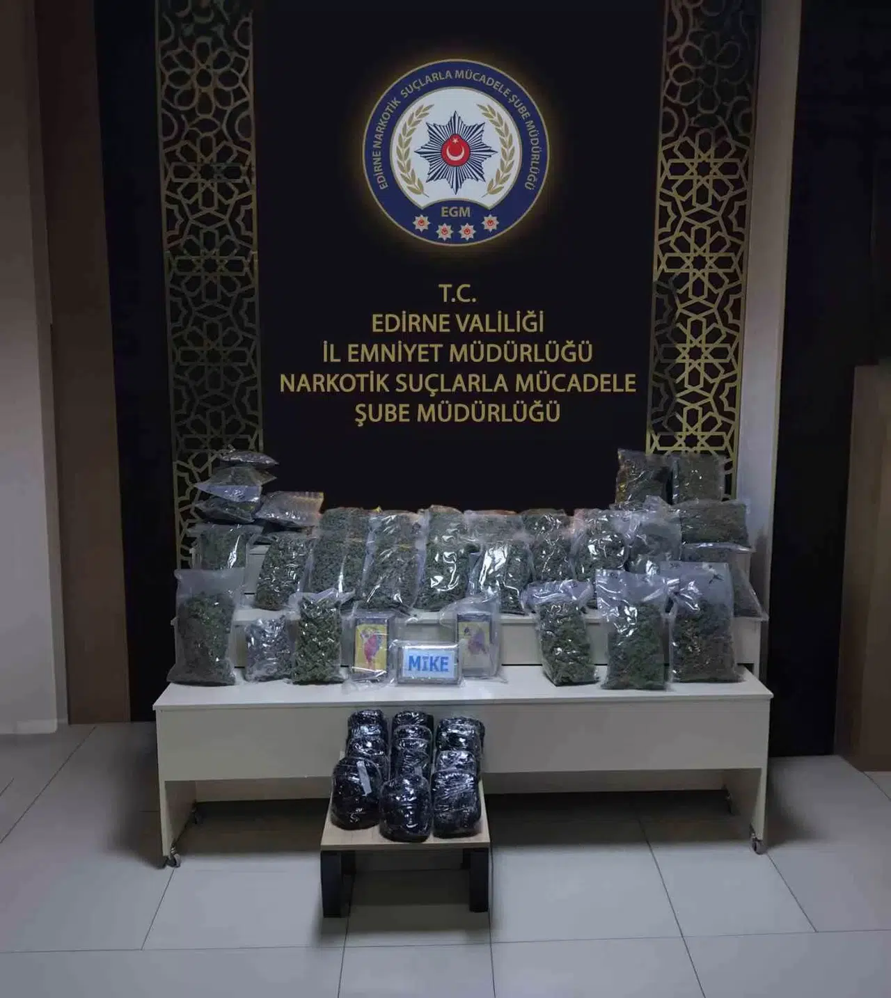 Edirne İl Emniyet Müdürlüğü Narkotik Suçlarla Mücadele Şube ekipleri tarafından Kapıkule Sınır Kapısı’na yurt dışından gelen bir tırda dedektör köpeği destekli arama yapıldı. Yapılan aramada yakıt deposunun gizli bölmesinde 33 paket içerisinde 16 kilo 550 gram uyuşturucu hammaddesi, 3 kilo 450 gram kokain ve 17 gram skunk olmak üzere toplamda 20 kilo 117 gram uyuşturucu ele geçirildi. Olayla ilgili tır şoförü gözaltına alındı.