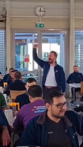 Öte yandan MESS’in toplu iş görüşmeleri sonrası açıkladığı yüzde 35’lik maaş zammı teklifine bir tepki de Bosch fabrikasından geldi. Tofaş’ta olduğu gibi Bosch işçileride fabrika yemekhanesinde tepki için çatal bıçakları masa ve tabaklara vurup maaş zam teklifini protesto etti.