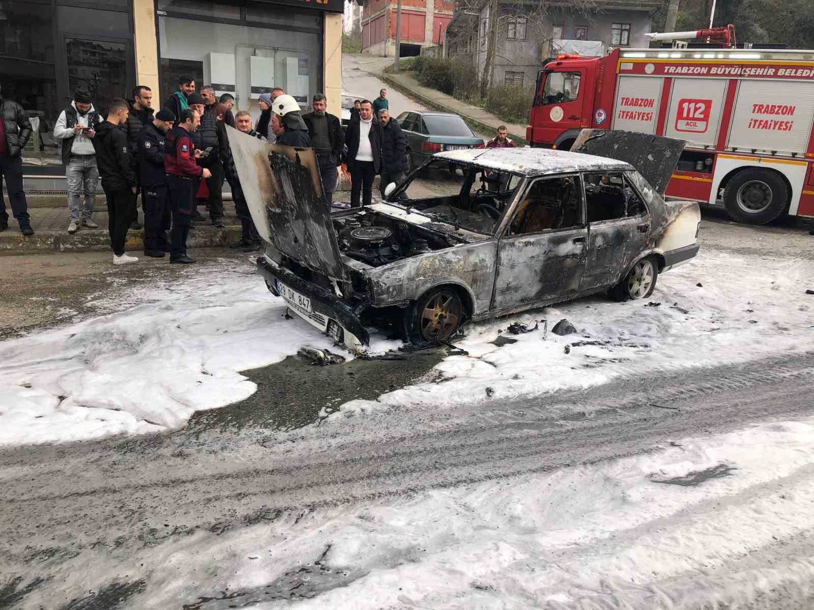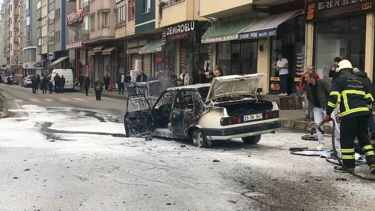 Edinilen bilgiye göre, bugün saat 13.30 sıralarında Trabzon’un Vakfıkebir ilçesinde bir araç sokak ortasında aniden alev alarak yandı. Yanan araca anında müdahale eden itfaiye ekipleri, daha büyük bir felaketi önleyerek yangını söndürdü.